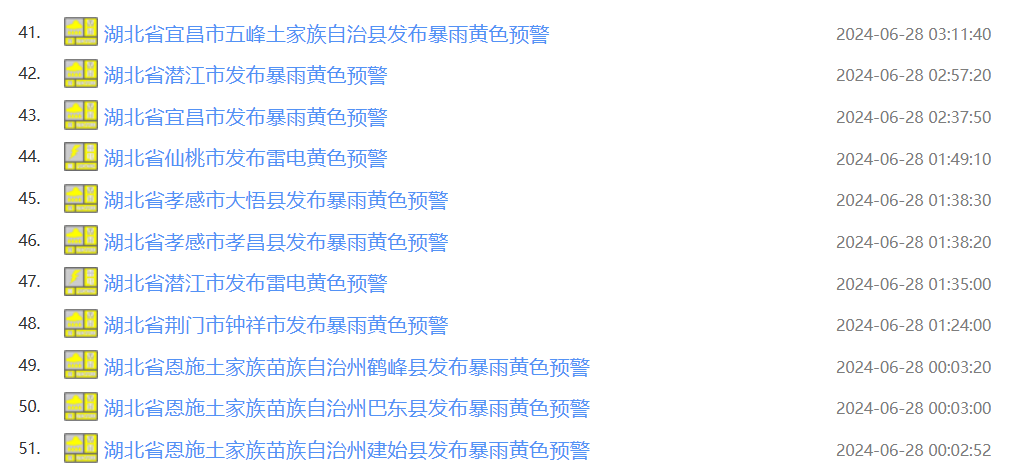连发50多条暴雨预警