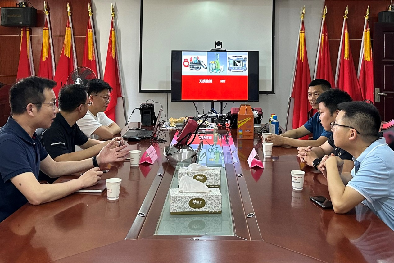 得知企业需求后,湖北特检院宜昌分院相关人员主动与其相关部门联系,先是赴现场了解生产线设备的主要情况,掌握设备功能、场所、结构、材质等信息,针对不同生产线的多种设备,拟定了对应的检测方案;分院还邀请企业制造部相关人员前来参观,详细向其介绍了无损检测相关知识,并现场演示无损检测仪器设备操作流程。企业制造部负责人对分院的热情服务和精心安排表示感谢,表达了合作意向。