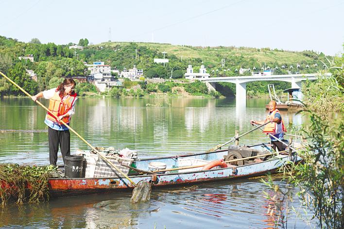 每年汛期,是“德新”护水志愿服务队一年中最忙碌的时候。受强降雨影响,上游大量枯枝败叶等漂浮物涌入汉江。蒋德新和队员们一起来回巡查、清理,一天要连续工作12个小时以上。“大家都不喊累,都希望早一点清理干净。”蒋德新说。