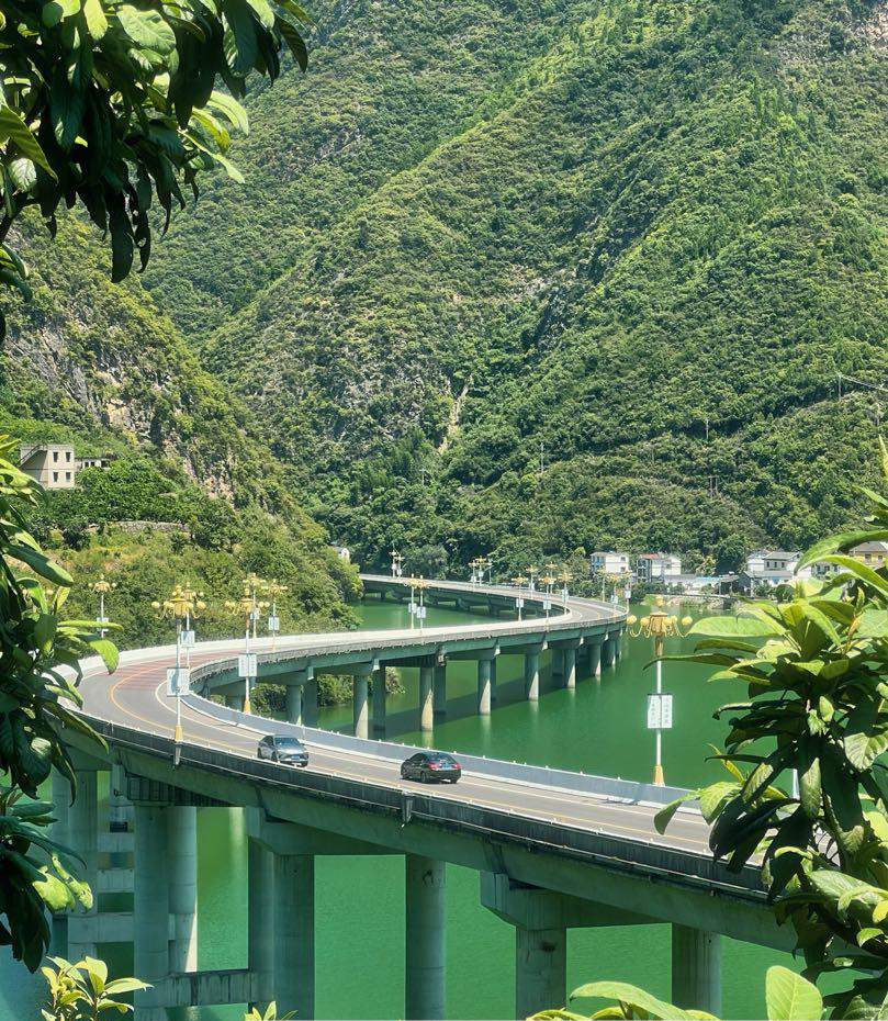 车行中国最美水上公路——兴山古昭公路,两岸青山如黛,桥下绿波横卧,与公路相映成趣。