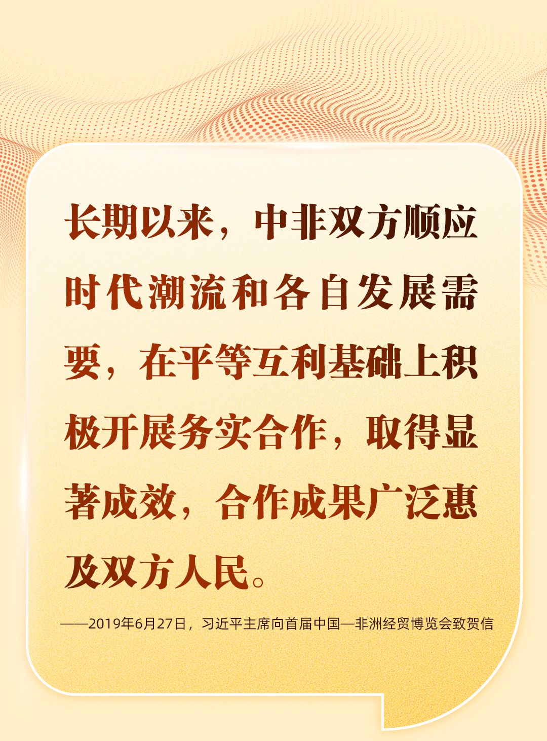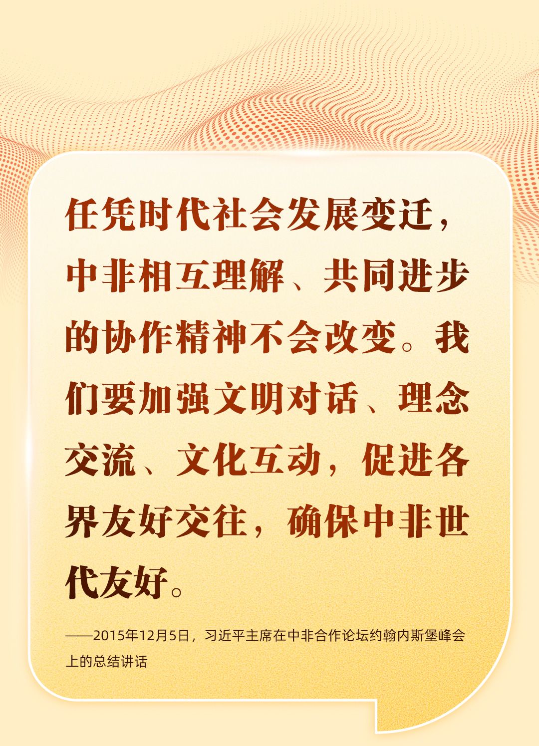 “中非是风雨同舟、守望相助的好朋友、好伙伴、好兄弟。”关于中非友谊、中非发展、中非命运共同体理念,习近平主席曾在不同场合多次强调和阐释,引领中非在现代化征程上携手并肩、阔步前行。