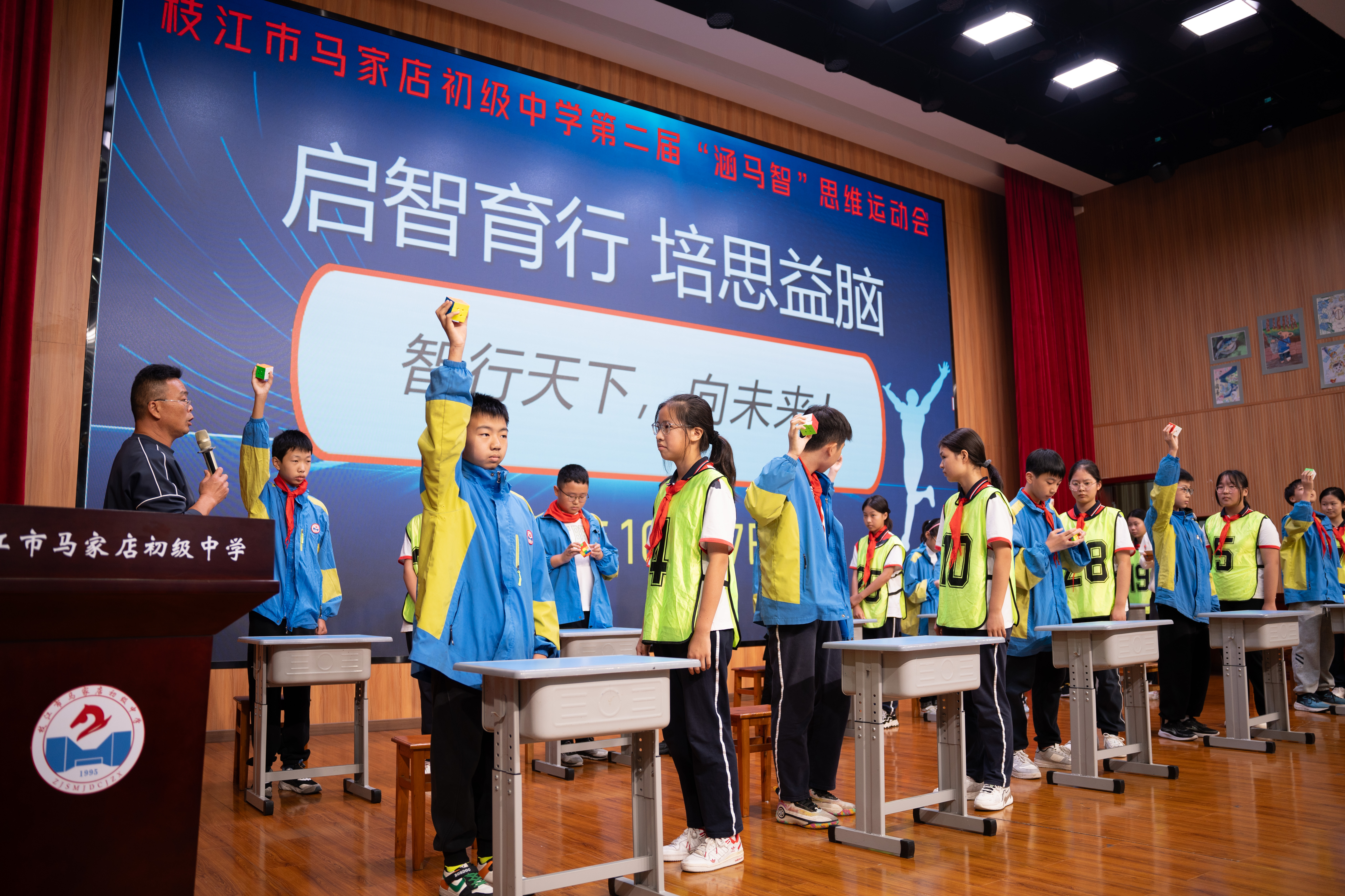 在举行的思维运动会中,三阶魔方还原、拆解九连环、三国华容道、72段魔尺、九宫数独等项目逐一进行。随着主持人一声“比赛开始”,激烈的思维碰撞一触即发,同学们全神贯注,手指翻飞,尽显脑力与手力比拼。