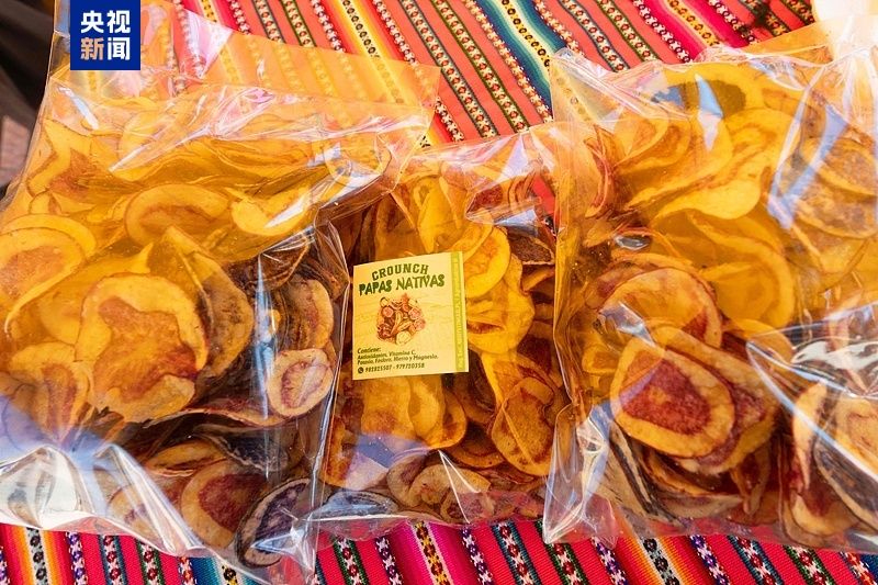 △今年5月30日,秘鲁庆祝首个“国际马铃薯日”。当地一个街头市场上,展示着用马铃薯制成的薯片。