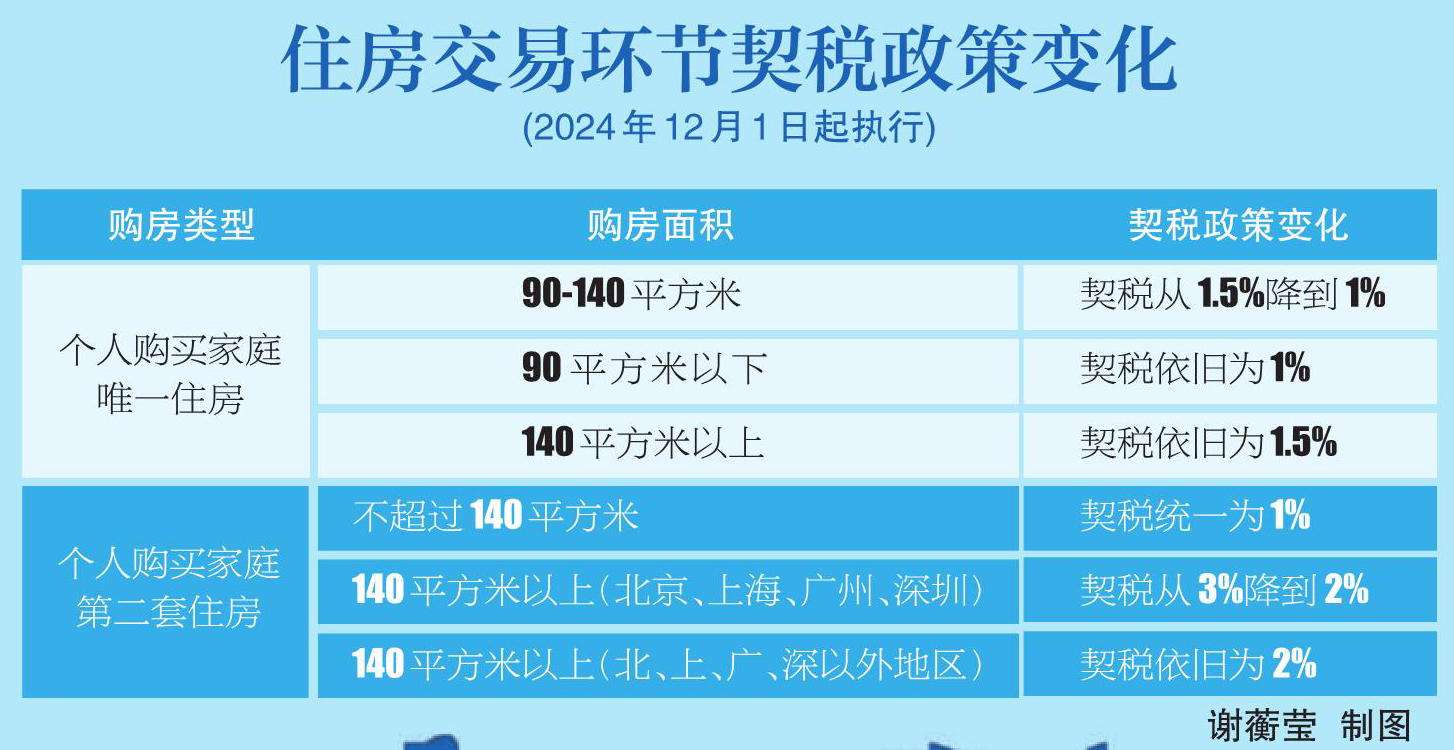 业内人士对比了契税调整前后的征税率变化。以家庭购买首套房为例,调整前,购买90平方米及以上140平方米以下住房需按照购房总价的1.5%征税率缴纳契税,调整后,只要是购买140平方米及以下的住房,契税征税率都只按1%计算。以市民总价100万元的房产来算,契税少了5000元。而以购买二套房为例,调整前,不超过140平方米住房均按2%的征税率征收契税,调整后,按照1%的征税率征契税,按照总价100万元来计算,可少缴1万元契税。