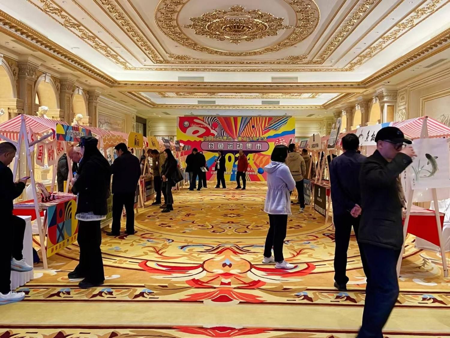 开幕式的同时,酒店一楼大堂举办了钓鱼运动市集,众多钓鱼相关企业集结在此,展销的产品涵盖了高端钓鱼装备、文创产品、钓鱼用品等多个领域,共同构成展示了丰富多彩的钓鱼产业全景图。