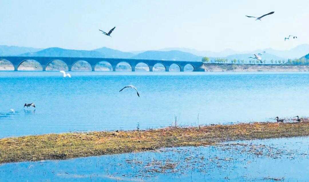 近年来,郧阳区生态环境质量持续向好。郧阳湖水质连续10年保持在Ⅱ类及以上标准,生态优美的湿地公园吸引了众多珍稀候鸟纷纷聚集汉江河畔栖息繁衍,种群数量也逐年增加。