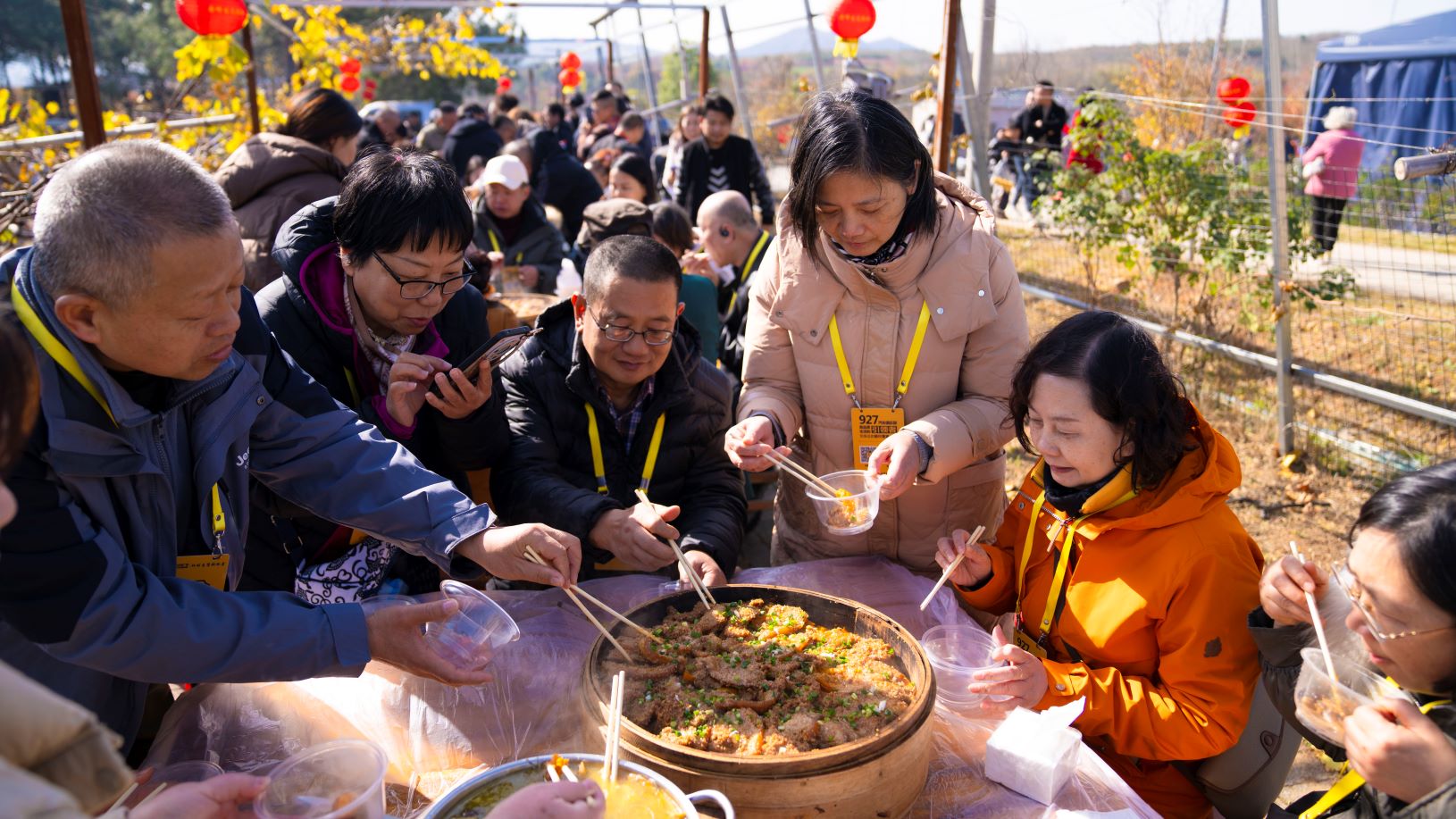 活动现场,人头攒动,热闹非凡。欢快喜庆的锣鼓声中,头戴红花的肥硕年猪被簇拥着一路前行,游客们纷纷围观拍照,定格这喜庆的画面。中午12时,开席上菜,热气腾腾的蒸笼格子被抬上餐桌,游客们争相品尝。“这个菜分量非常足,东西也很好吃,等会我们还要带点京山的土特产回去。”来自天门的游客欧阳女士告诉记者。