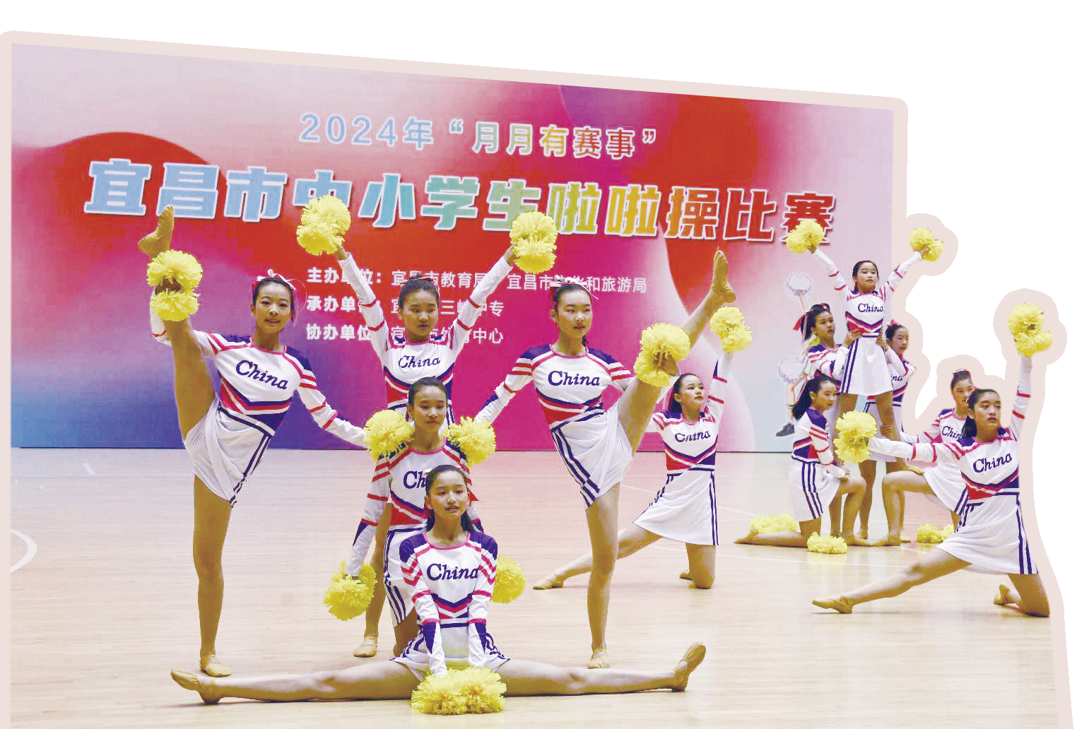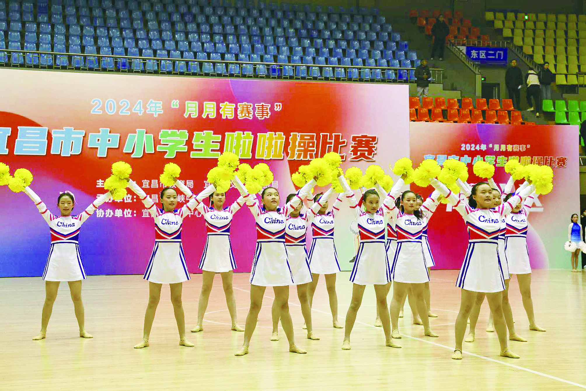 12月14日,2024年宜昌市中小学生、幼儿园啦啦操比赛在宜昌市体育中心体育馆举行。15支参赛队现场进行了规定动作啦啦操、爵士街舞啦啦操比赛。(记者吴延陵 摄)