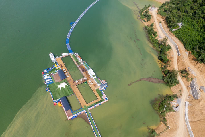 这是2023年7月29日拍摄的湖北省恩施土家族苗族自治州清江景江水上运动中心(无人机照片)。均为本报记者杜子璇摄