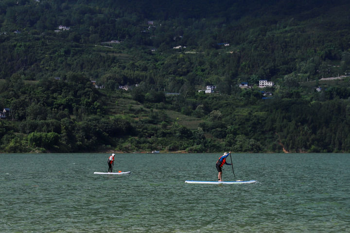 2023年7月29日,桨板选手在湖北省恩施土家族苗族自治州清江赛场训练。