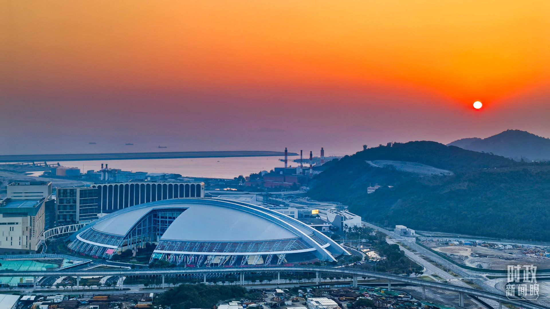 △12月20日,朝霞映衬下的澳门东亚运动会体育馆。(总台央视记者张垚拍摄)