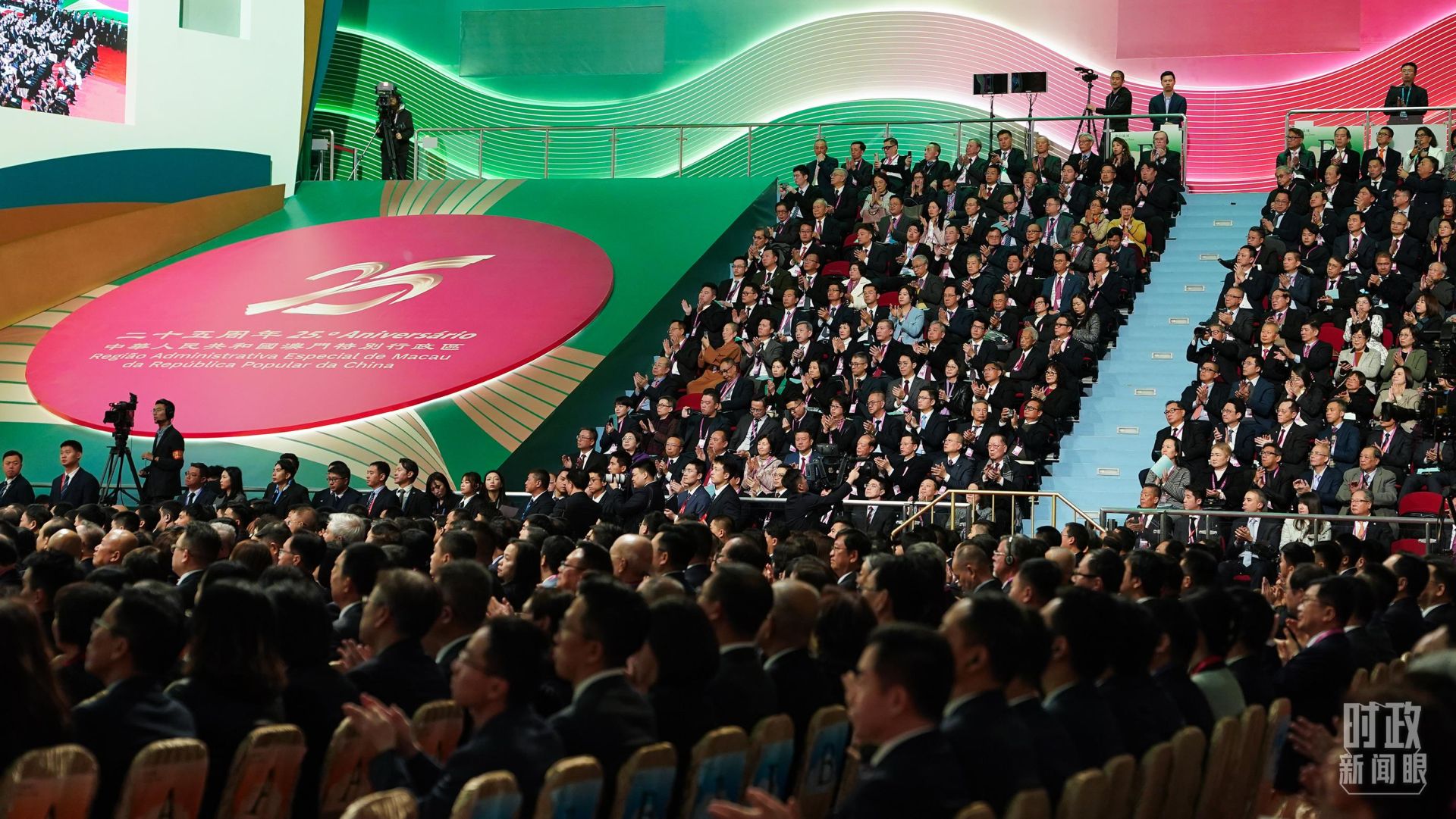 12月20日上午,澳门东亚运动会体育馆内,庆祝澳门回归祖国25周年大会暨澳门特别行政区第六届政府就职典礼隆重举行。