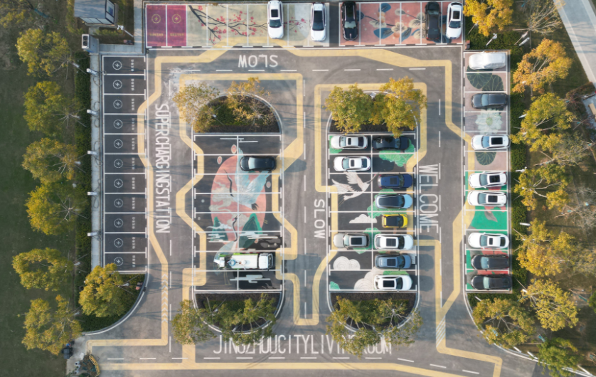 昨日,在城市新客厅停车场,太阳能路灯、充电桩、监控、绿植、垃圾桶等设施一应俱全。路面上的‘荆州欢迎您’英文图案格外醒目,一个个泊位图画特别、识别度高,泊位内有仙鹤祥云、腊梅迎春等图案。停车场内,除彩色图案的泊位外,另外还设置有快充车位、超级快充车位。市民刘先生说,这种园林式停车场环境好,配套齐全,进出畅通。因为这里离家近,我们经常驾车来这里充电,蛮快也方便。希望这种园林式停车场越来越多,让城市更时尚,更有品味。