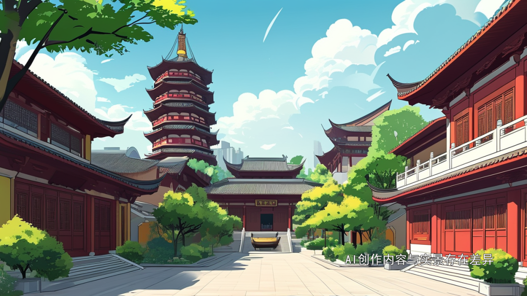 踏入安国寺的那一刻,不再是香火缭绕,而是AI绘制的彩色笔触环绕,每一砖一瓦都仿佛在低语,用卡通的线条讲述着千年的故事。