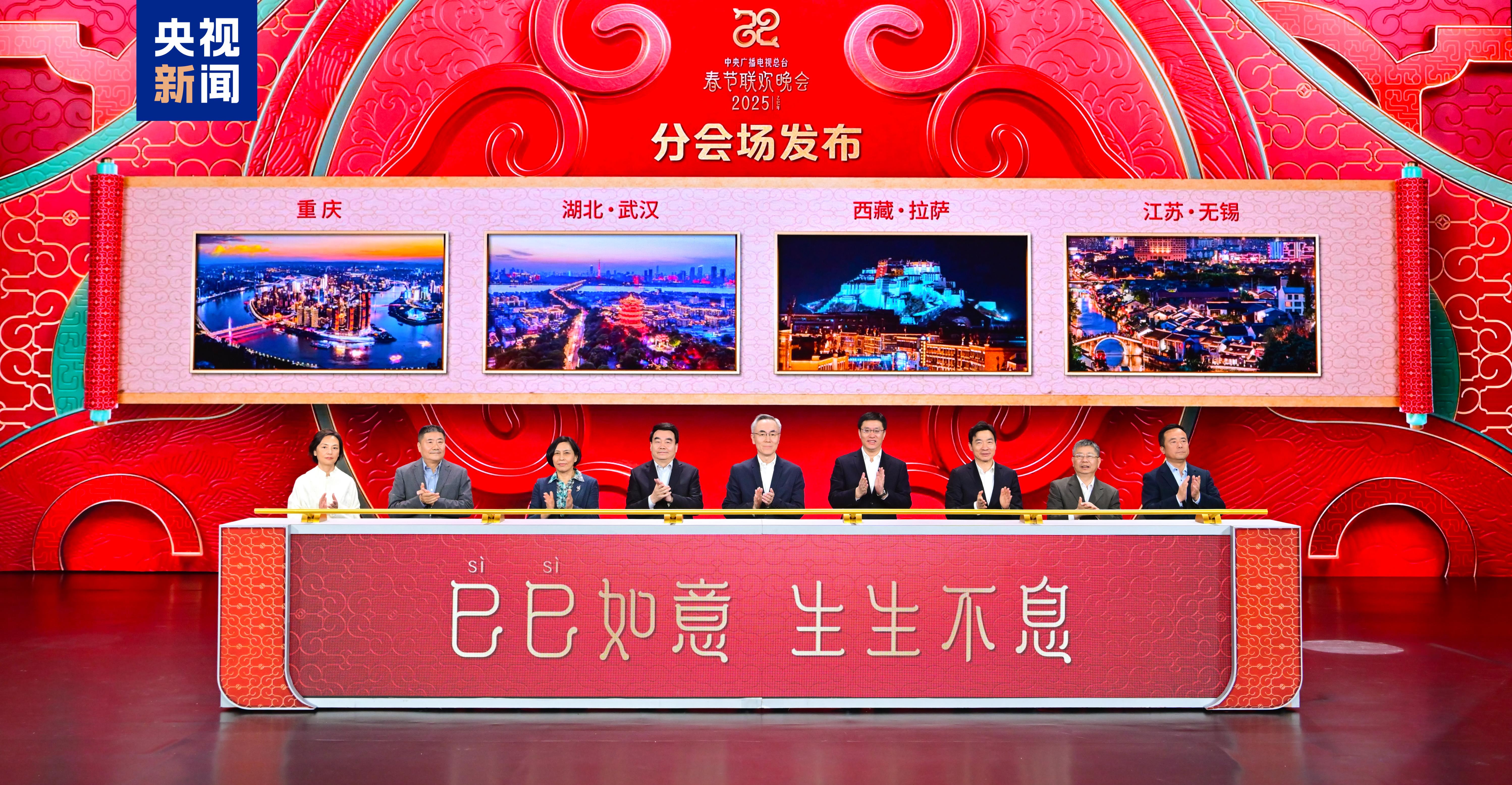 12月24日,中央广播电视总台《2025年春节联欢晚会》发布四地分会场。重庆、湖北武汉、西藏拉萨、江苏无锡四个风格鲜明、各具特色的分会场将携手北京主会场,与全国各族人民共庆佳节,在除夕夜为全球受众奉上欢乐吉祥、喜气洋洋的“文化年夜饭”。