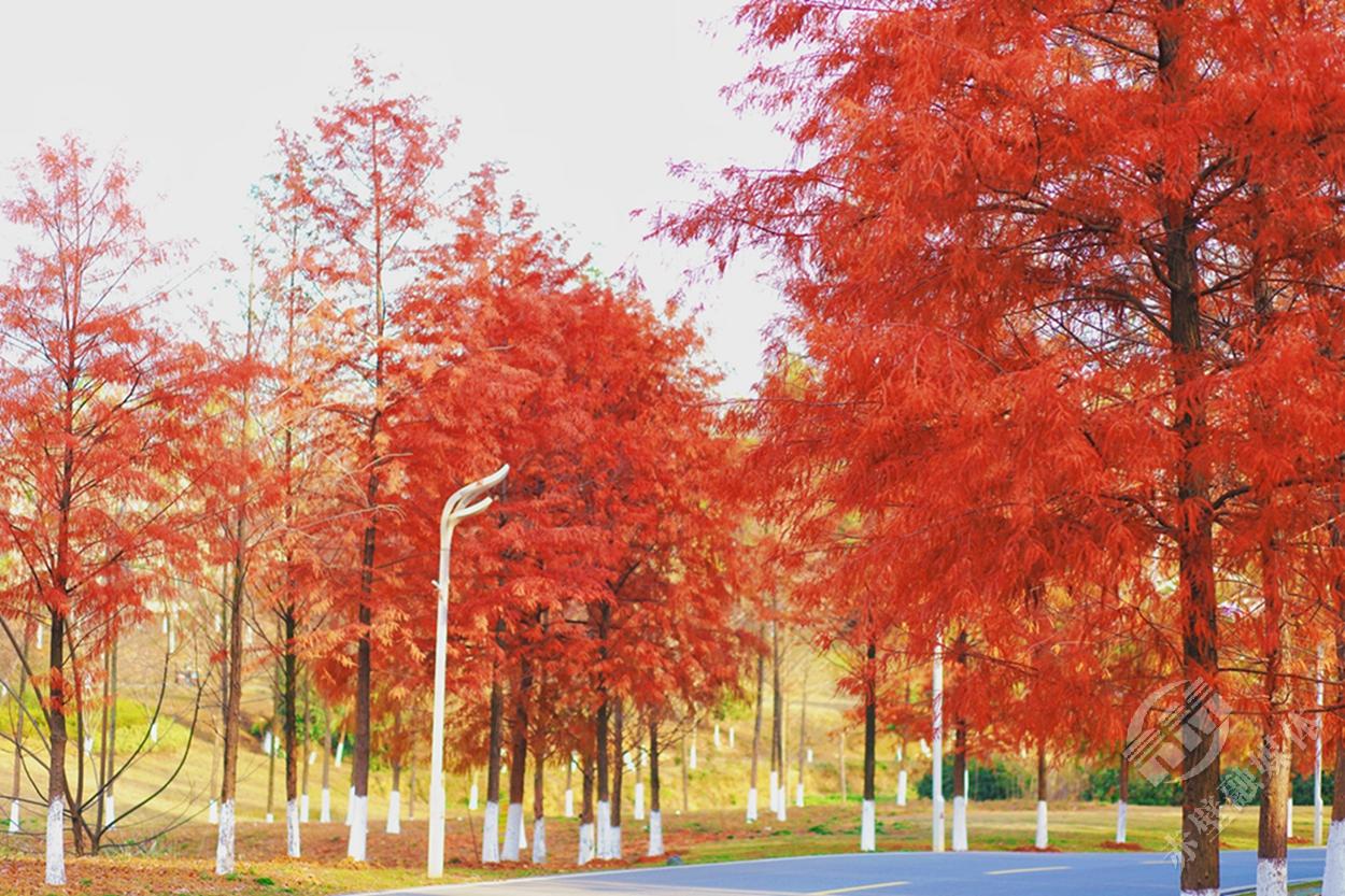 而那一抹抹艳丽的红杉树
