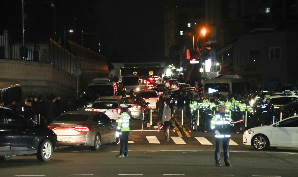 2024年12月4日凌晨,警察在韩国首尔的韩国总统府外戒备。新华社记者 姚琪琳 摄