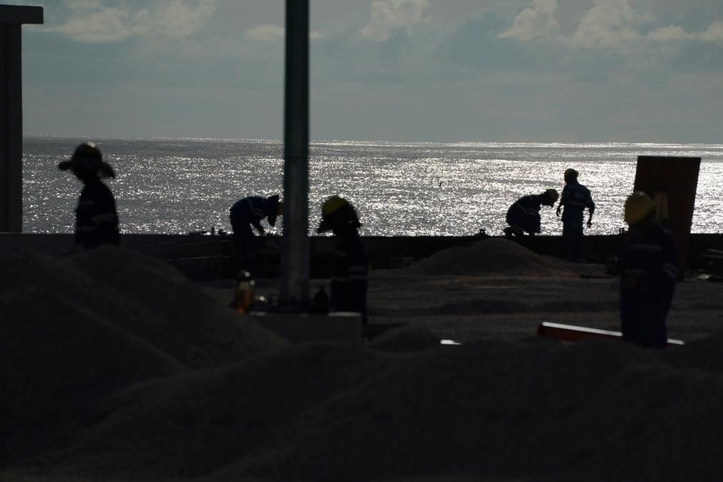 2024年1月18日,工作人员在瑙鲁艾沃港码头升级改造项目工地工作。新华社记者 王申 摄