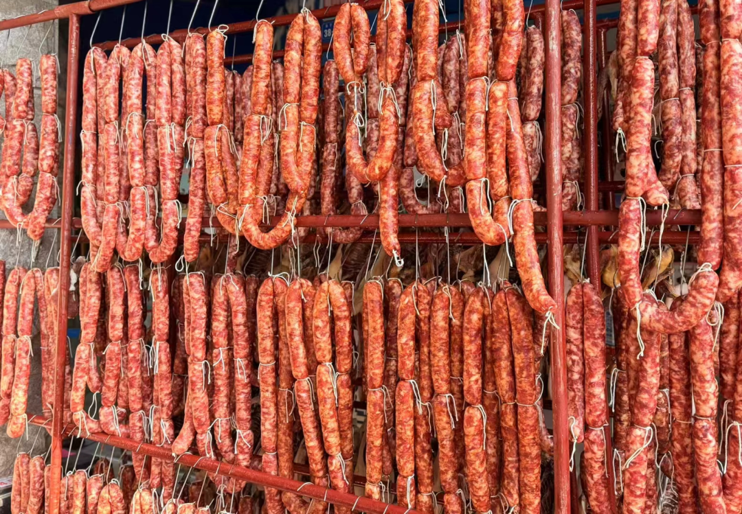这个冬天,开始有腊味了,也开始有年味了。路过几家餐馆,门前都晒出了颜色鲜艳的香肠,看得人眼馋嘴馋心里也馋。隆冬时节,家家户户的屋檐下、阳台上,挂起一串串腊味,带来惹人垂涎的干香和熏香,浓浓的人间烟火气,莫过于此。