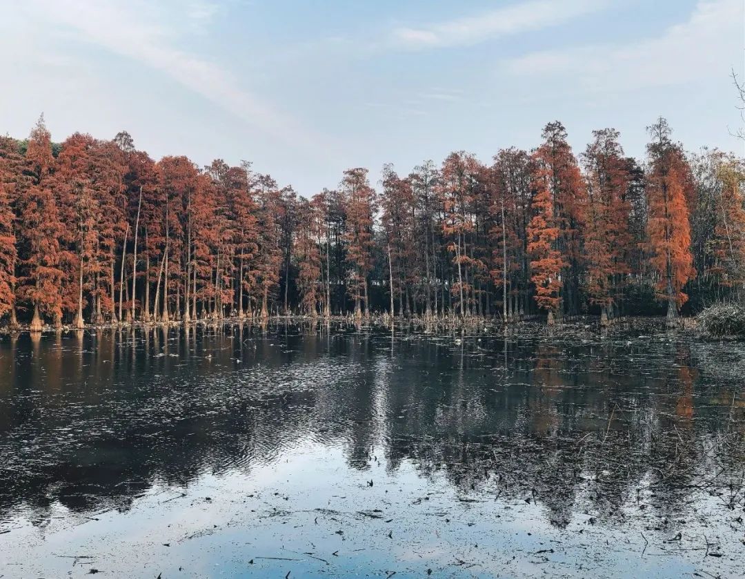 四季常青的竹子茁壮生长,爬山虎还未完全变色,城市公园里生机随处可见。山色苍翠,古树参天,高大挺拔的树木直耸云霄,繁茂的枝叶交织成巨大的绿色天幕。冬日暖阳透过树叶的缝隙洒下,形成一片片斑驳的光影,如梦如幻。