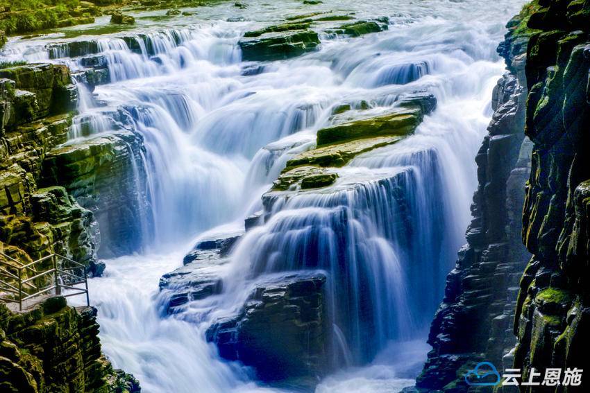 湖北恩施利川境内风光秀丽,河流众多,其中最著名的大江河就有三条,清江、郁江、唐崖河,且源头都在利川境内,再加上利川大部分地方属于喀斯特地貌,沟壑纵横,落差较大,最大落差一千多米,大落差让这些美丽的河流形成了大大小小美丽壮观的瀑布群!