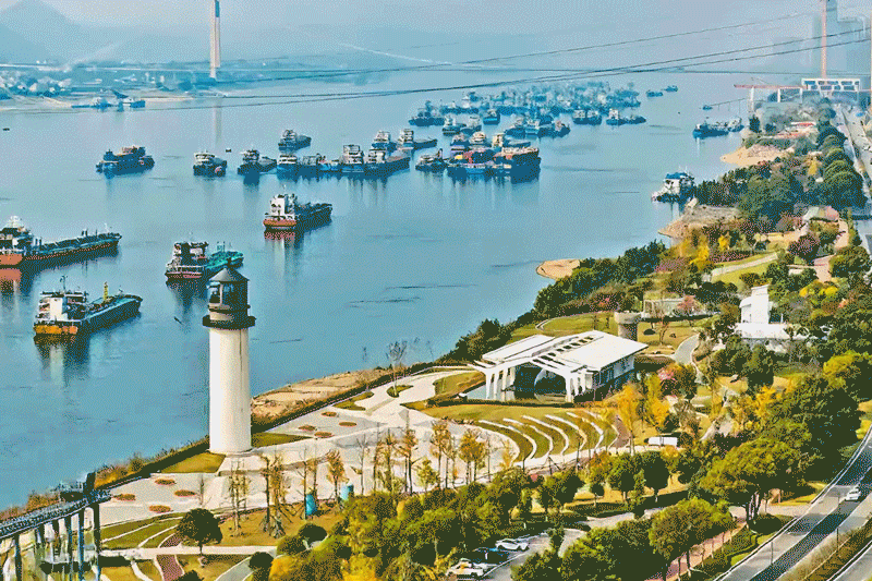 11月7日,宜昌市滨江公园灯塔广场风景宜人。(湖北日报全媒记者 刘曙松 摄)