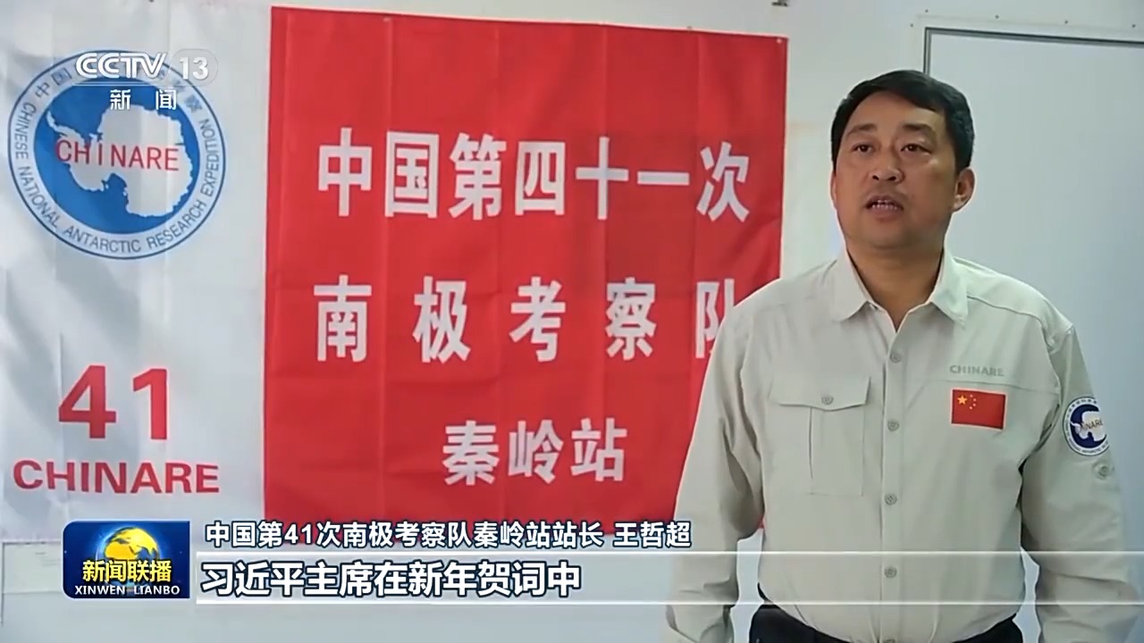 中国第41次南极考察队秦岭站站长 王哲超:习近平主席在新年贺词中提到,南极秦岭站崛起冰原,这让我们倍感光荣。新的一年,我们全体在站队员将继续以高度的责任感和使命感,确保秦岭站各项考察任务圆满完成,为更好地认识极地、保护极地、利用极地作出新的更大的贡献。