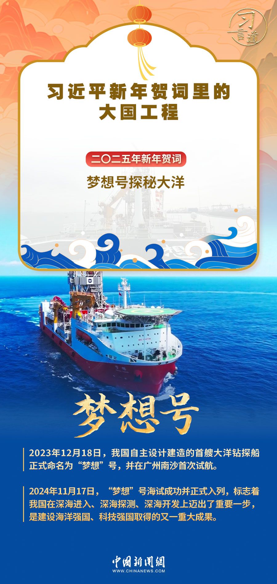 习近平主席在二〇二五年新年贺词中,为中国人逐梦星辰大海的豪情壮志喝彩。新年之际,让我们一起重温习近平主席在新年贺词中点赞的大国工程。