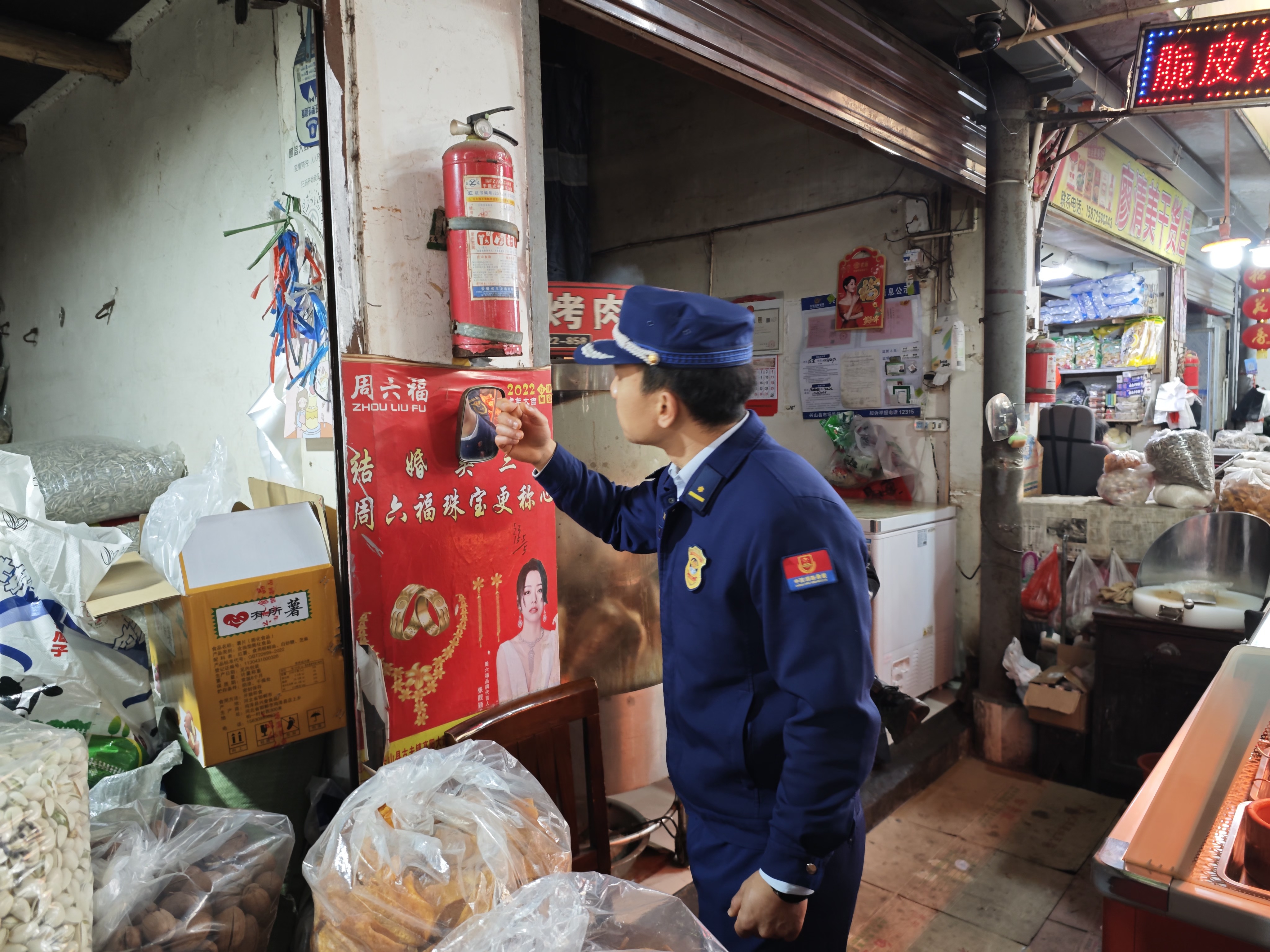 大队监督员对各市场内储存物品是否符合要求、堆垛布置间距是否合理、电气线路敷设是否规范、消防设施是否保持完好有效、用火用电是否规范、可燃物清理是否及时等方面进行了全面检查,并提醒市场消防安全负责人、管理人,高度重视消防安全防火工作,定期对电气线路和燃气用具等开展一次全面自查,发现问题及时整改,坚决防止“带病运行”,杜绝火灾事故发生。