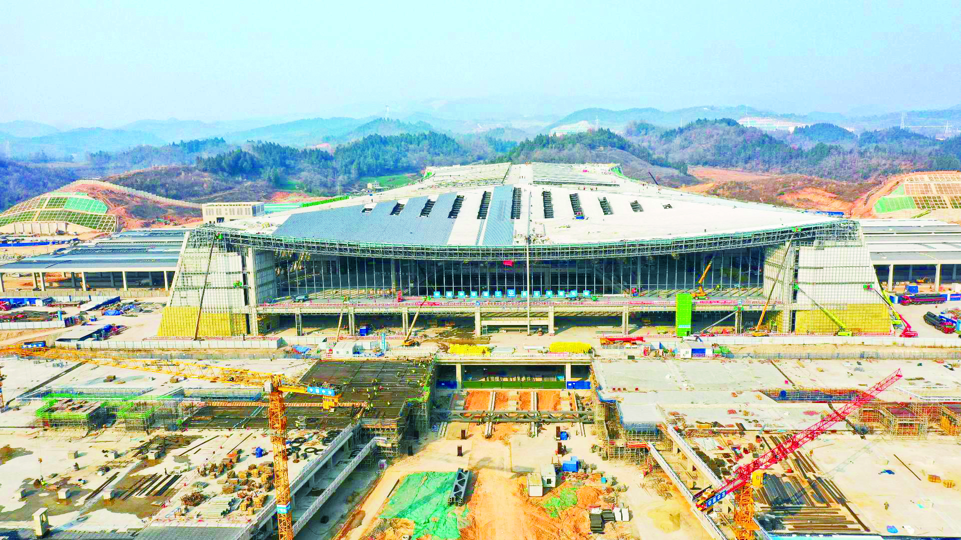 1月8日,宜昌高铁北站建设工地施工正酣。从空中俯瞰,高铁北站已雄姿初现。整体项目计划今年9月建成并投入使用 。(记者吴延陵 摄)