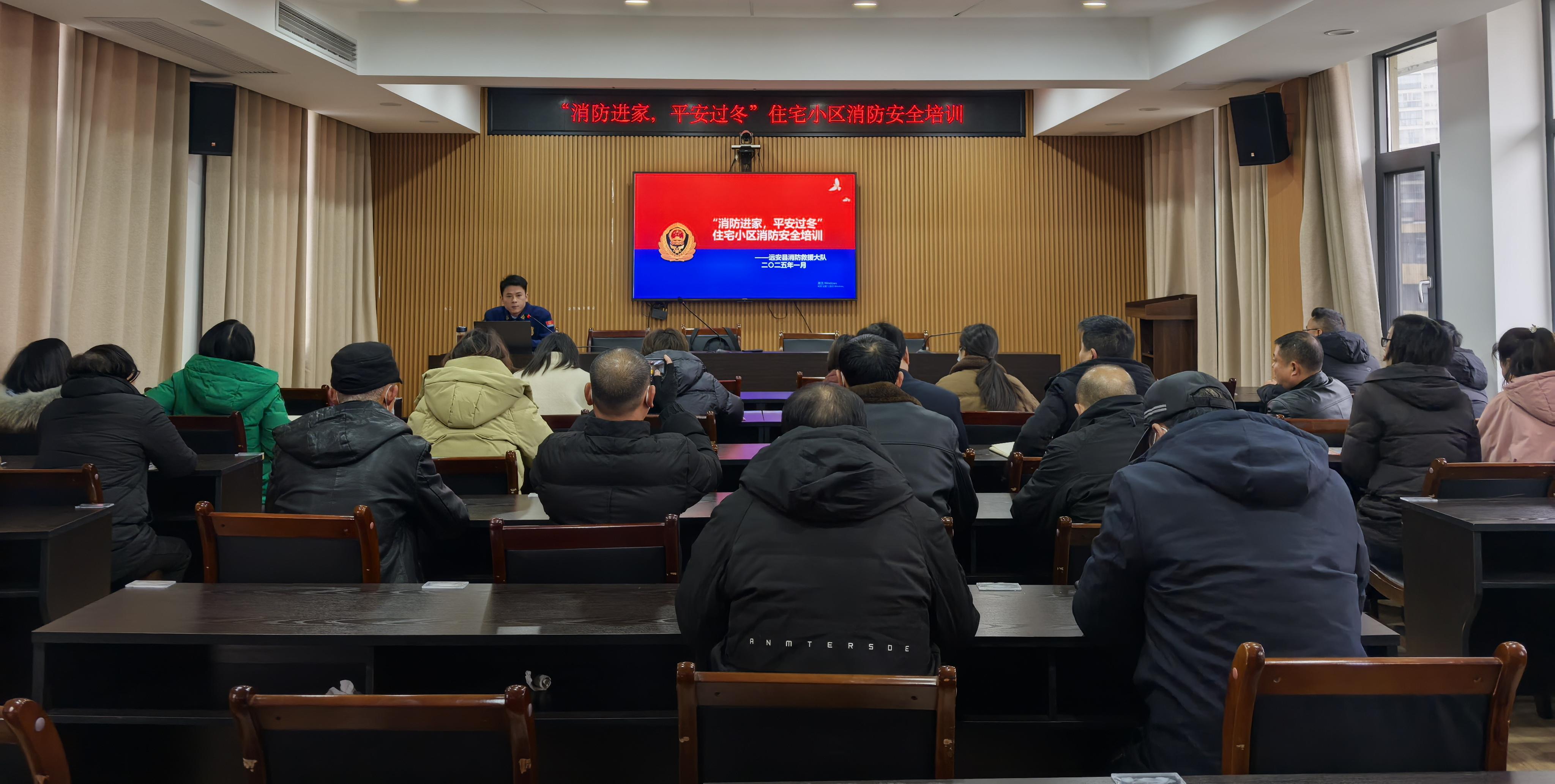 为进一步增强住宅小区物业服务企业消防安全管理水平,提高物业服务从业人员消防安全意识,预防和减少火灾事故的发生,1月9日,宜昌市远安县消防救援大队联合县住建局开展了以“消防进家 平安过冬”为主题的消防安全知识培训,全县物业管理企业负责人及各小区安全责任人共40余人参加培训。