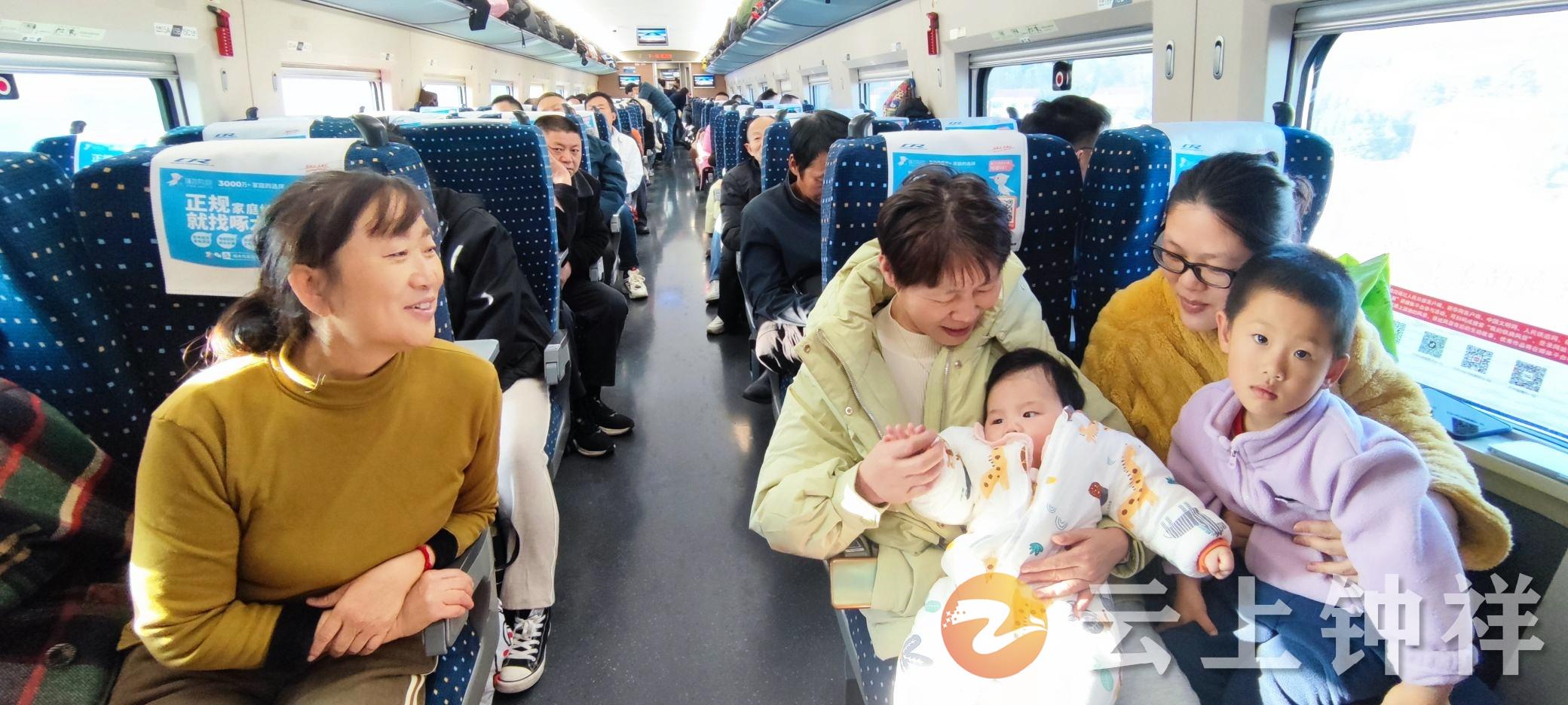 乘客周月是旧口镇古庙村人,她在深圳一家外贸公司上班。当她在微信群看到家乡镇村网格员发的“接您回家”信息后,就赶紧报了名。这次她们一家三个成人和两个孩子免费坐上了这趟返乡高铁。“政策真是好,我们又太幸运了。往年的时候我们抢不到票,就只能开车回去,路上经常堵,回钟祥要20多个小时。现在赶上了这趟专列,光车费就节约了近2000元钱,又省了心。”周月告诉记者,家乡现在发展得很好,他们也都在考虑回乡发展。