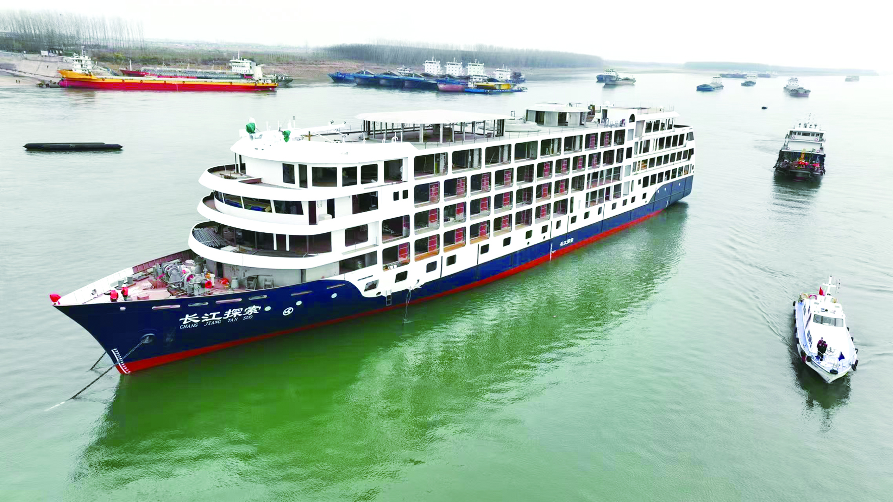 近日,“长江探索”号豪华游轮在宜昌鑫汇船舶修造有限公司建造基地顺利下水(如图),宜昌海事局枝江海事处提前谋划、全程护航,为船舶下水创造了良好环境。