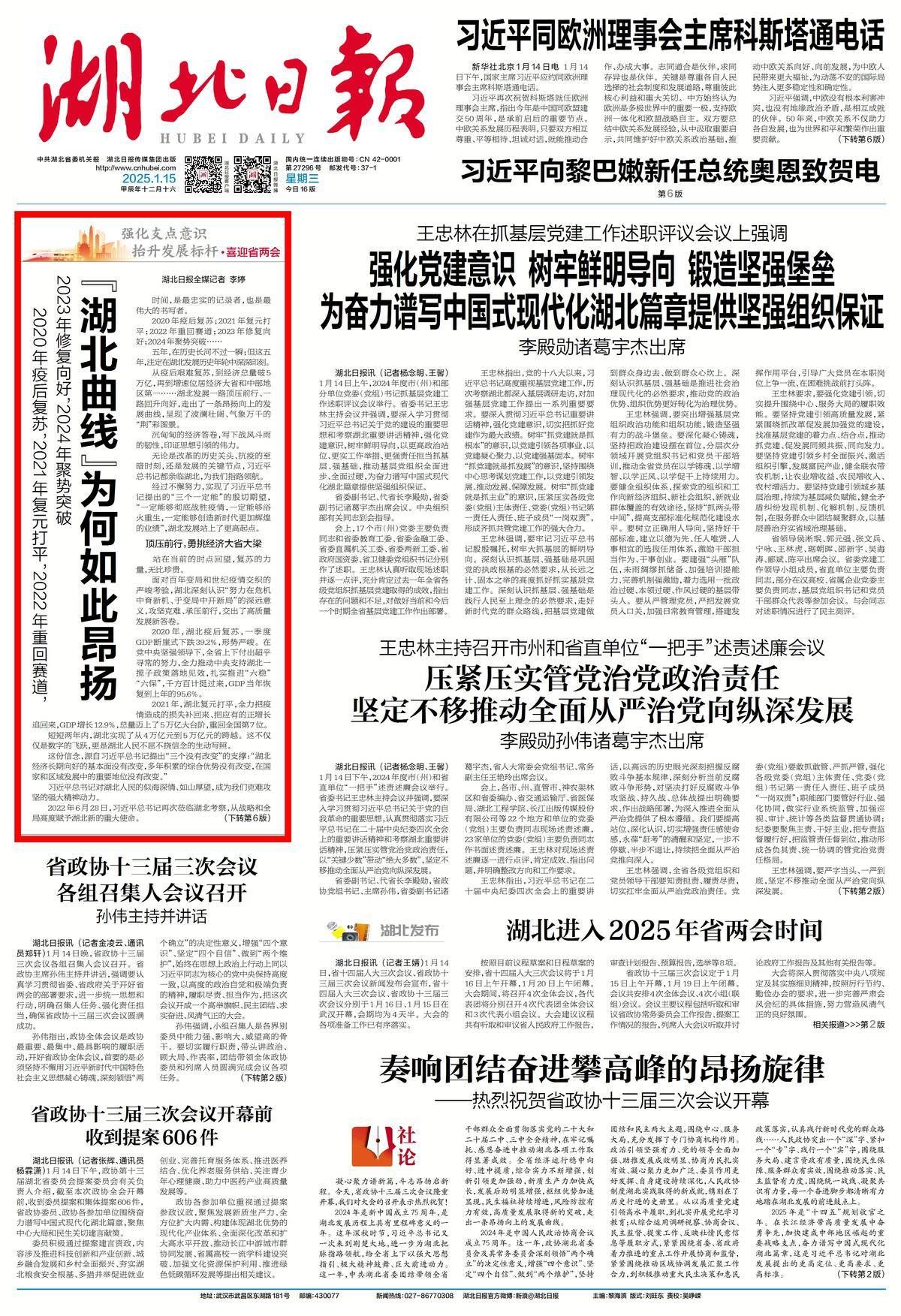 详见1月15日湖北日报一版