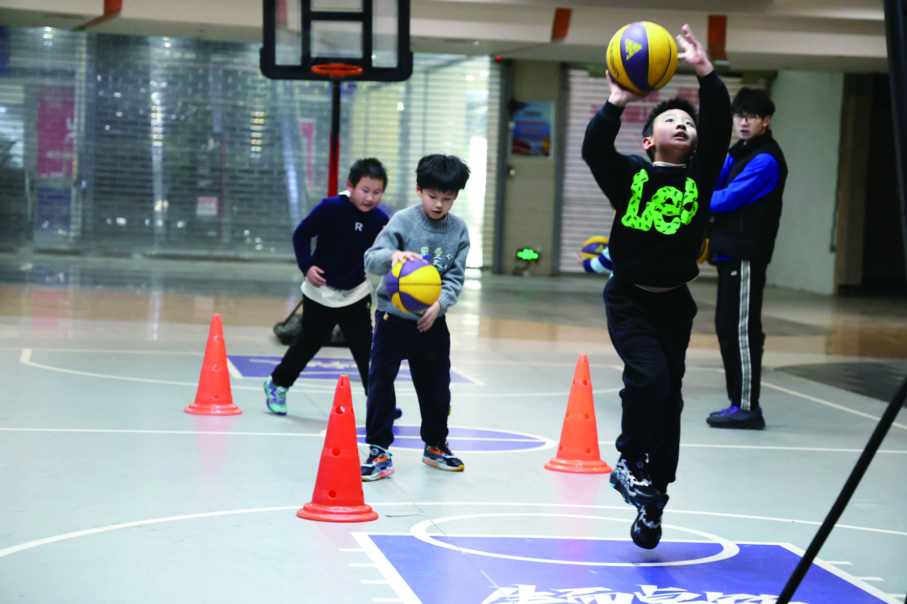 1月15日,在西陵区一家青少年篮球俱乐部,小学生在练习篮球上篮动作。寒假来临,许多小学生来到篮球、足球、乒乓球、武术等各种运动类培训机构、俱乐部接受培训,强身健体、磨炼意志,乐享一个健身动感的假期。(记者林潇 摄)