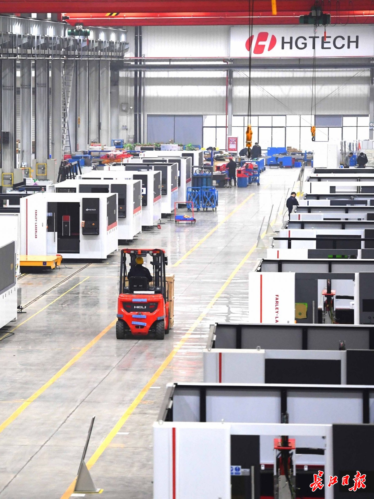 华工科技智能制造产业园的现代化厂房,国内领先的流线化智慧工厂,像生产汽车一样生产先进激光智能装备,具有多设备、标准化、自动化、批量化生产特点。长江日报记者 高勇 摄