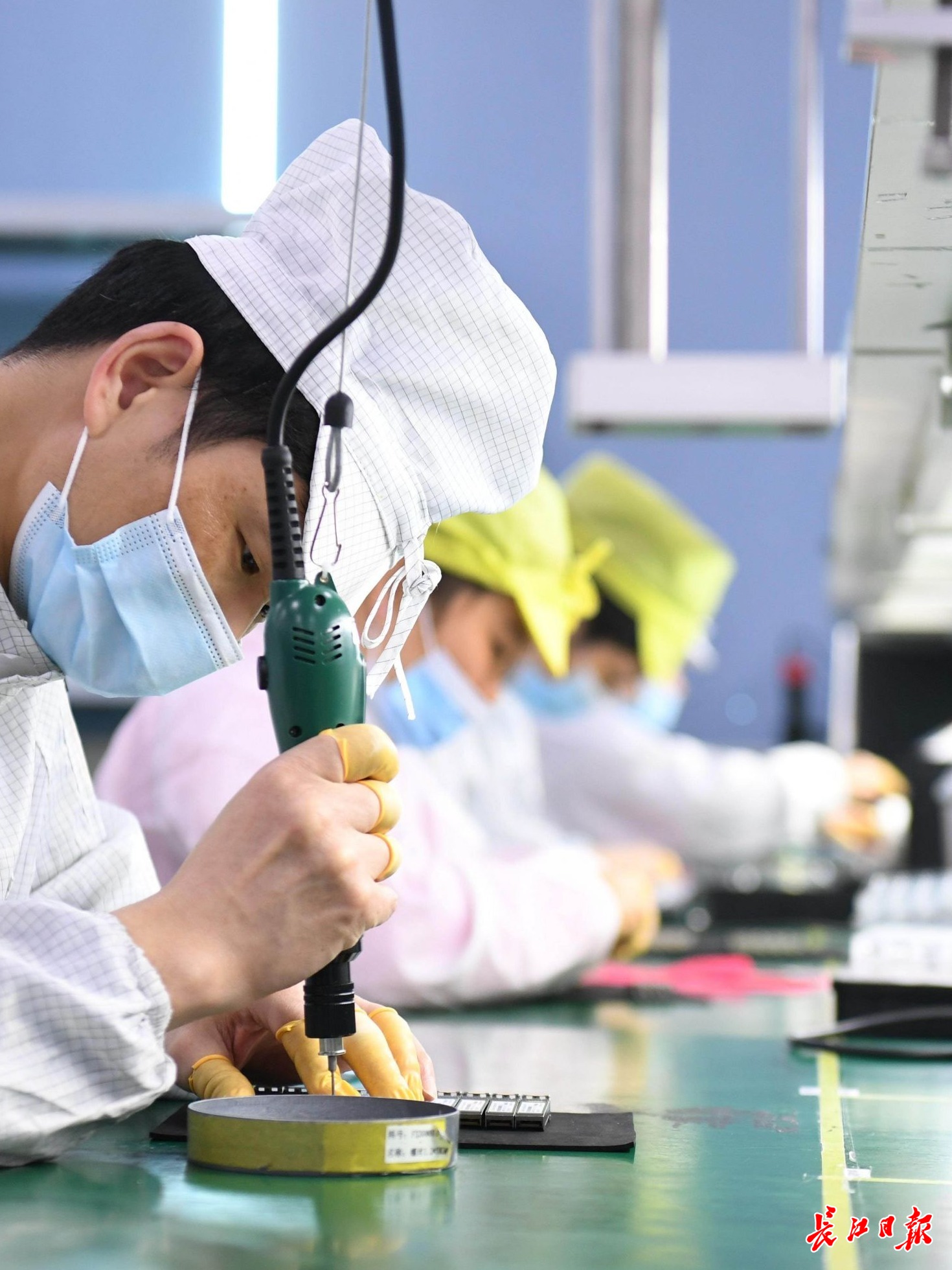 高德红外民用生产线,技术工人在各自岗位上井然有序地忙碌着。长江日报记者高勇 通讯员余小小 赖涵雅 摄