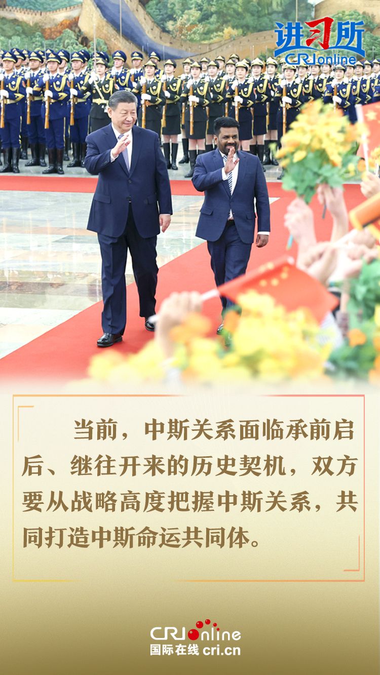 习近平主席指出,建交68年来,两国关系始终保持健康稳定发展,树立了不同国家友好相处、互利合作的典范。当前,中斯关系面临承前启后、继往开来的历史契机,双方要从战略高度把握中斯关系,共同打造中斯命运共同体。