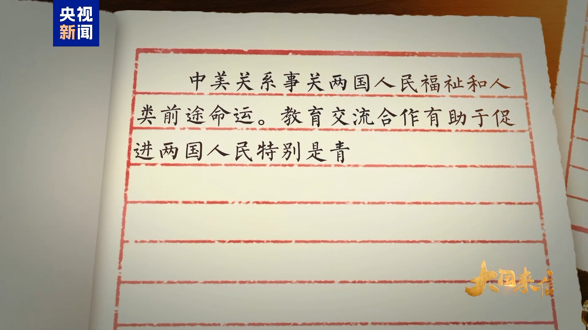 锦书云中来,尺牍传深情。2006年,时任浙江省委书记习近平在美国肯恩大学见证了中美合作创办温州肯恩大学的签约仪式。自2014年设立以来,温州肯恩大学不仅培养了数千名中外学子,还推动了中美两国青年一代的友好交流。去年6月,习主席复信美国肯恩大学校长拉蒙·雷波列特,鼓励中美两国高校加强交流合作,为促进中美友好贡献力量。