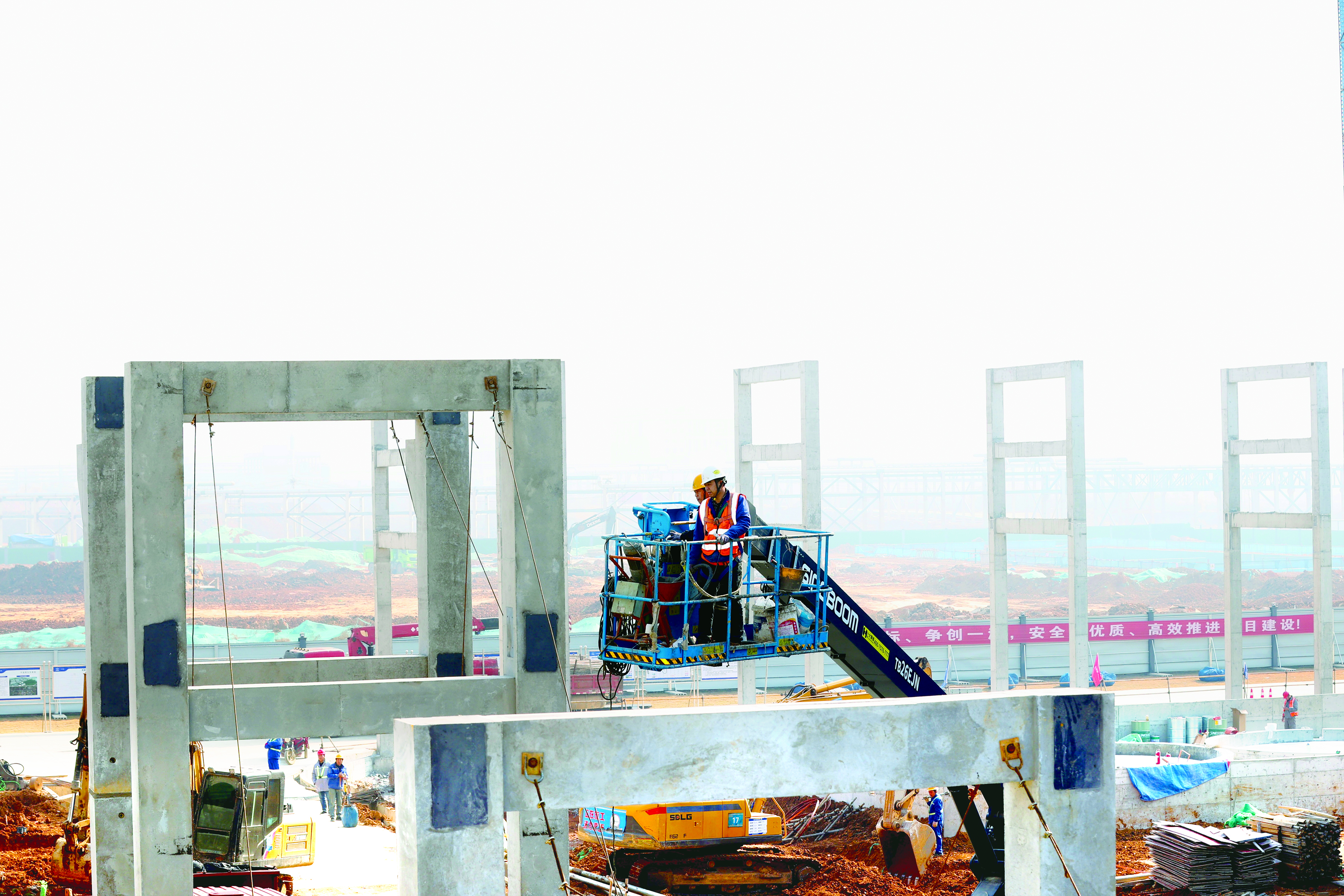 1月17日,宜昌广盛建科安装人员龚年艳、董福成,正在宜昌高新区白洋园区田家河大道旁宜化年产五万吨氯化聚乙烯项目工地,进行预制混凝土管廊架的安装及固定工序。据了解,预制混凝土管廊架成型质量高,安装速度快,满足化工园区耐腐蚀等工业建设标准,为项目提前进入生产阶段创造良好条件。