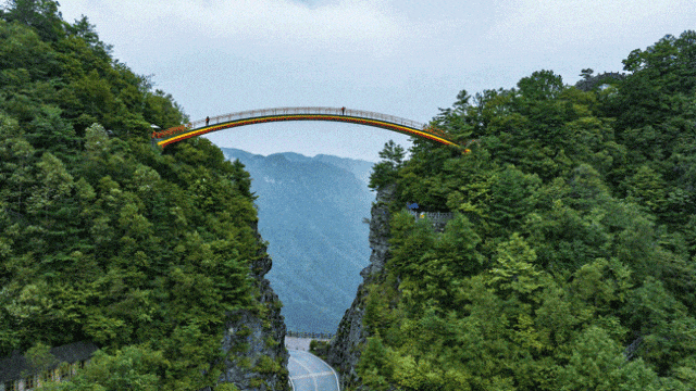 飞云渡全长58米,宽度为3-5米,是一座横跨在垭口上空的观景桥,是华中地区海拔最高的单孔无铰链双曲线钢架观景桥,是亚洲海拔最高的景观桥。