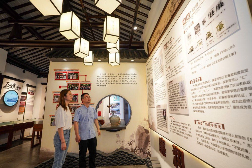 参观者在苏州市吴江区平望镇廉洁教育基地莺湖廉园内参观(2024年7月4日摄)。新华社记者 李博 摄