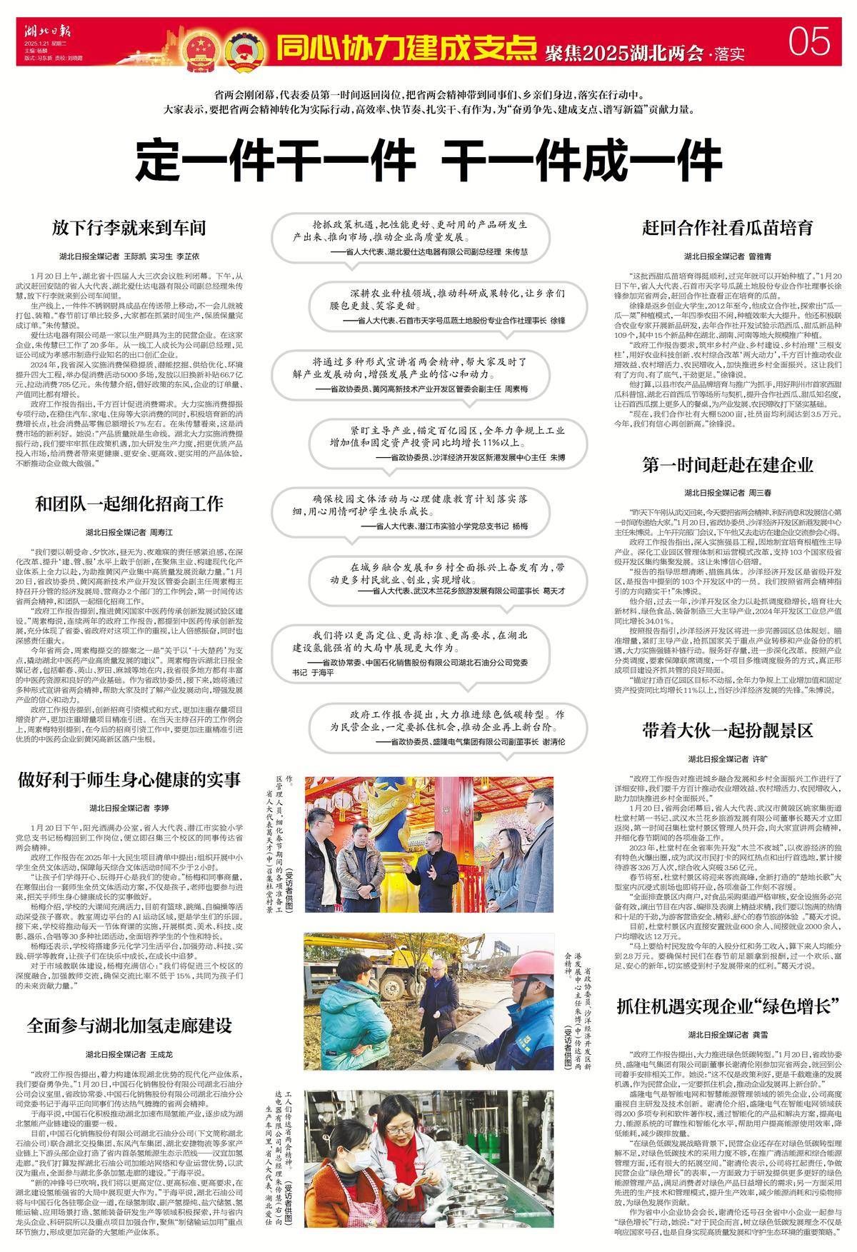 “昨天下午刚从武汉回来,今天要把省两会精神、利好消息和发展信心第一时间传递给大家。”1月20日,省政协委员、沙洋经济开发区新港发展中心主任朱博说。上午开完部门会议,下午他又去走访在建企业交流参会心得。