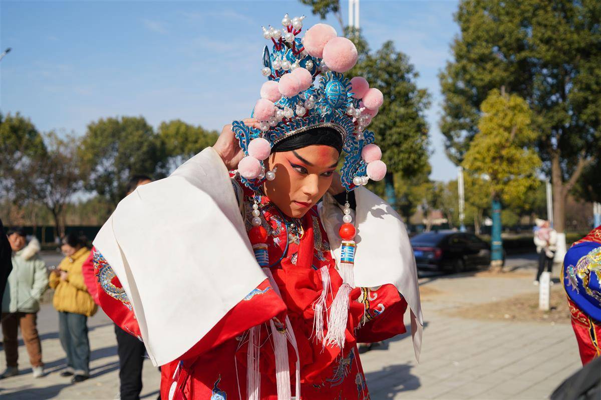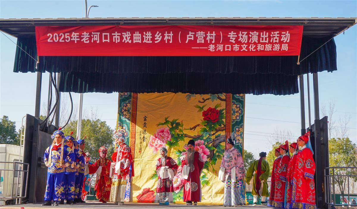 “过大年,唱大戏。今儿个咱们唱一出喜庆的《抬花轿》,给大家热闹热闹……”1月15日一大早,一辆流动舞台车来到湖北省老河口市酂阳街道卢营村,青年戏曲演员孙帅康一边和同事们搭台搬道具,一边笑着和围观的乡亲们唠嗑。