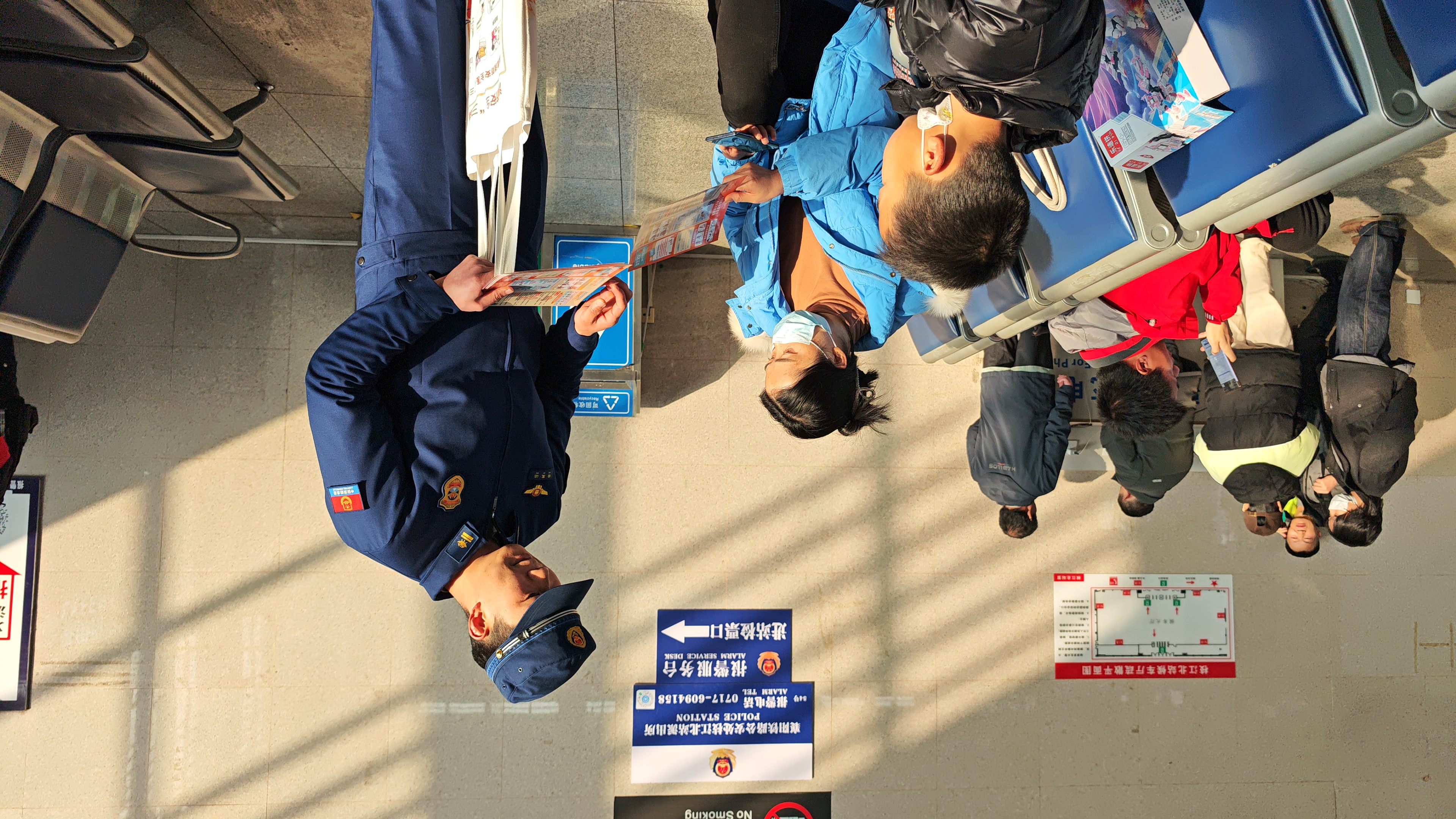 在枝江北站、汽车客运站的候车厅、进站口、出站口等显眼位置,消防宣传员设置消防宣传展板,张贴消防公益海报,向往来的乘客群众发放消防安全知识手册,通过面对面讲解的方式,向乘客群众详细讲解火灾预防、火灾报警、初期火灾扑救以及逃生自救等消防常识,提醒大家在乘车过程中,不要携带易燃易爆物品上车、切勿在车厢内吸烟等注意事项,确保旅途安全。