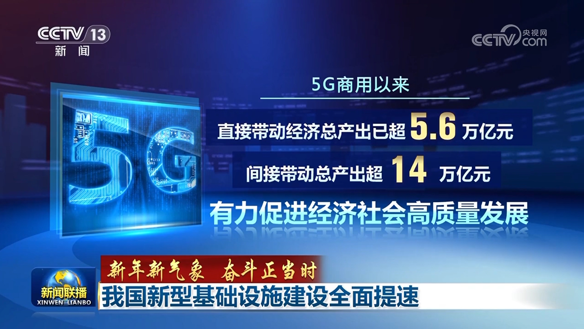 这几天,各地文旅都在为春节出游热作准备,在沉浸式体验、无人机表演、数字文创等一系列消费场景背后,都离不开5G、算力等信息基础设施的支撑。最新数据显示,我国算力规模近五年年均增速近30%,5G商用以来,直接带动经济总产出已超5.6万亿元,间接带动总产出超14万亿元,有力促进经济社会高质量发展。