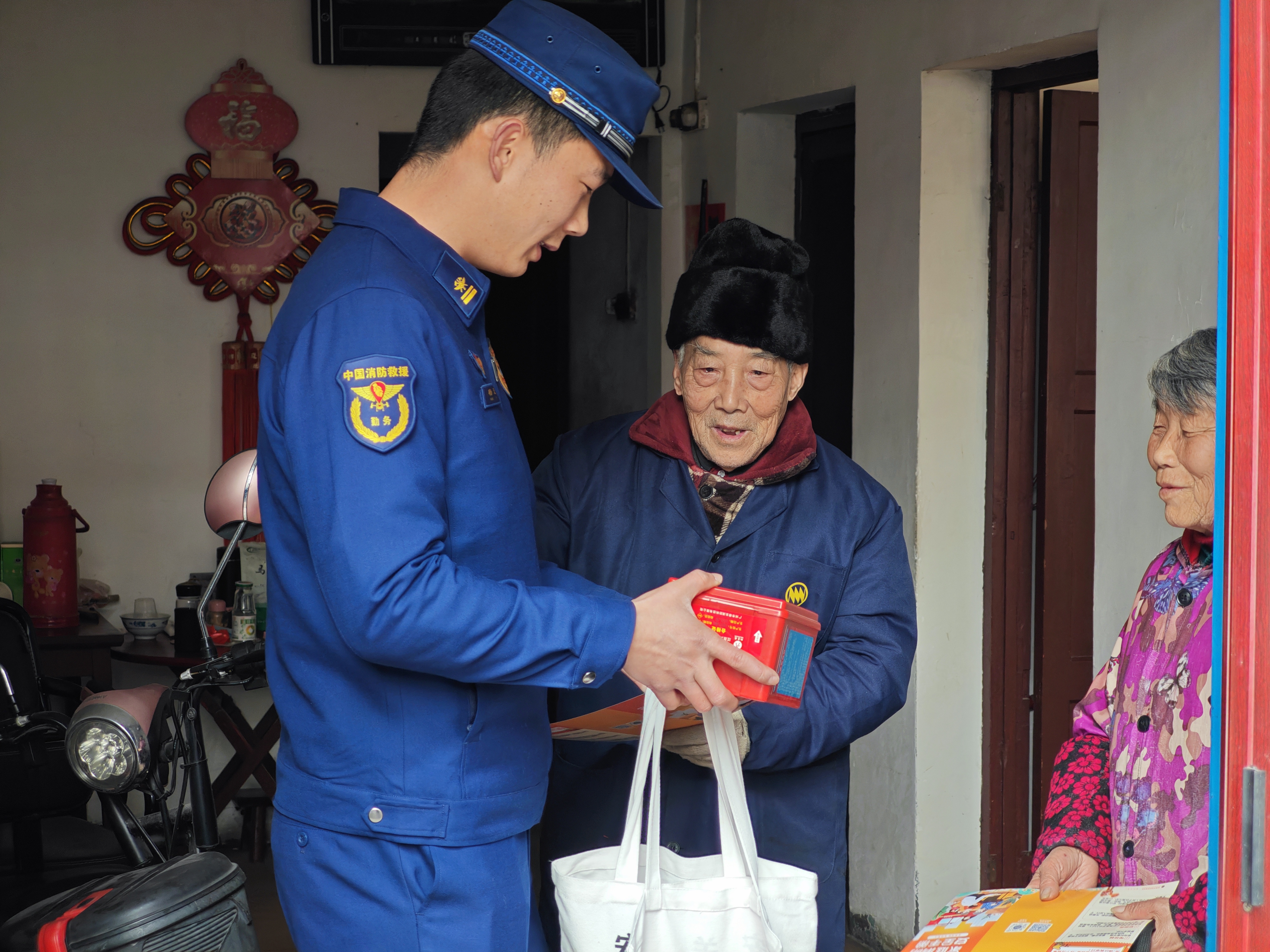为加强冬春季节火灾防控工作,提升社会公众消防安全意识和自防自救能力,1月20日,枝江市消防救援大队宣传人员联合马家店街道沱江社区网格员走进辖区居民家中开展“消防进家,平安过冬”消防宣传活动,为居民送上消防安全“大礼包”。