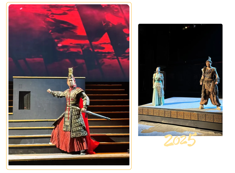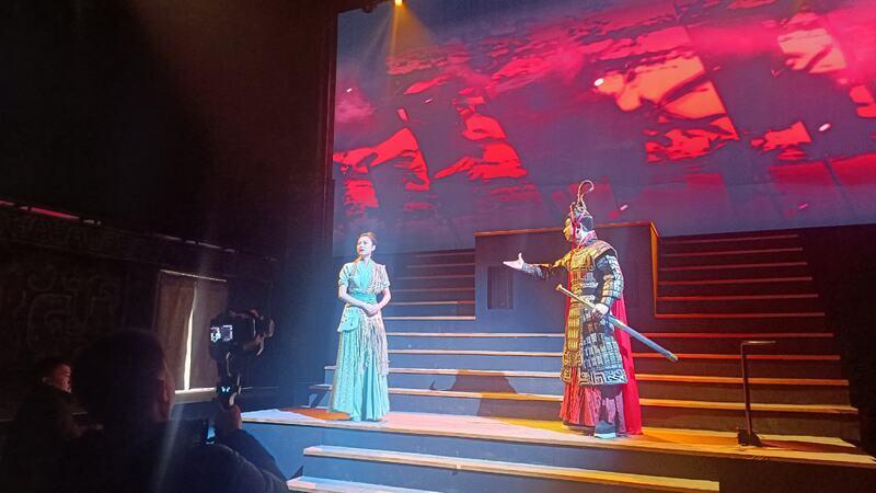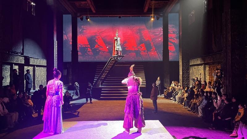 该剧运用现代化舞台表现手段与精妙的叙事架构,通过互动式剧情演绎、升降式舞台沙盘,以及光、电、投影等沉浸式技术,巧妙搭建起古今桥梁,让深厚的历史积淀与蓬勃的时代精神交相辉映,赋予古老历史崭新的当代价值。