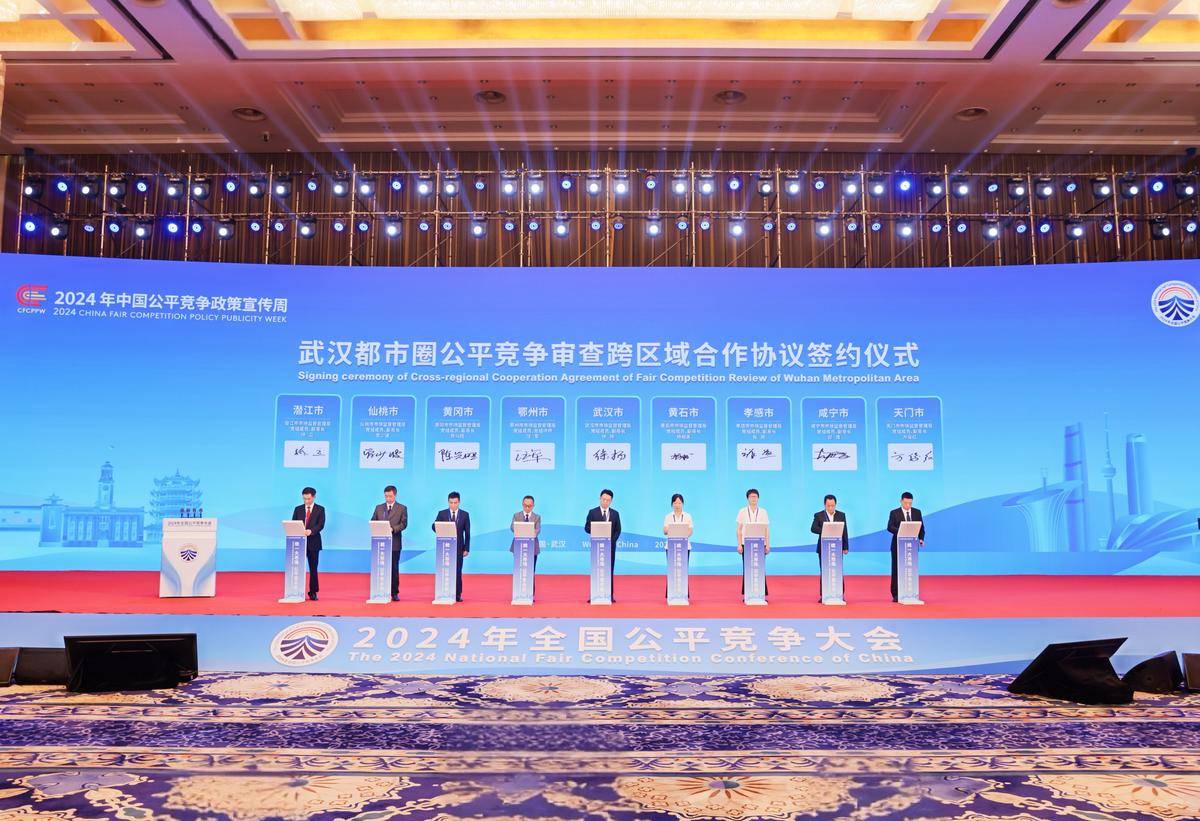 2024年全国公平竞争大会上,武汉都市圈签署公平竞争审查跨区域合作协议。(省市场监管局供图)