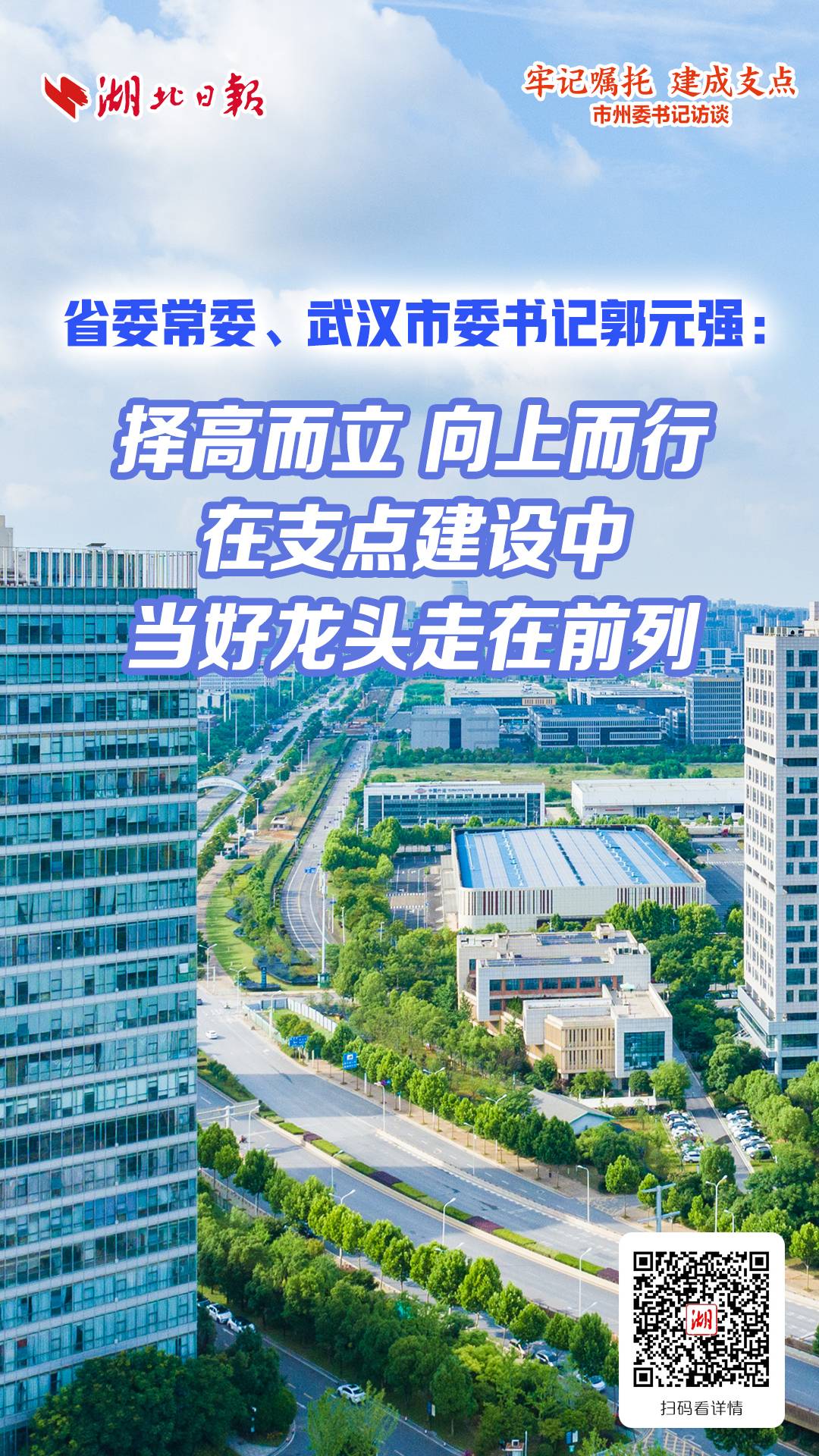 答:党的十八大以来,习近平总书记6次亲临湖北,为湖北改革发展把脉定向、指路领航,对武汉寄予厚望、赋予重任。省委高度重视武汉发展,要求武汉择高而立、向上而行,在加快建成中部地区崛起重要战略支点中当好龙头、走在前列。